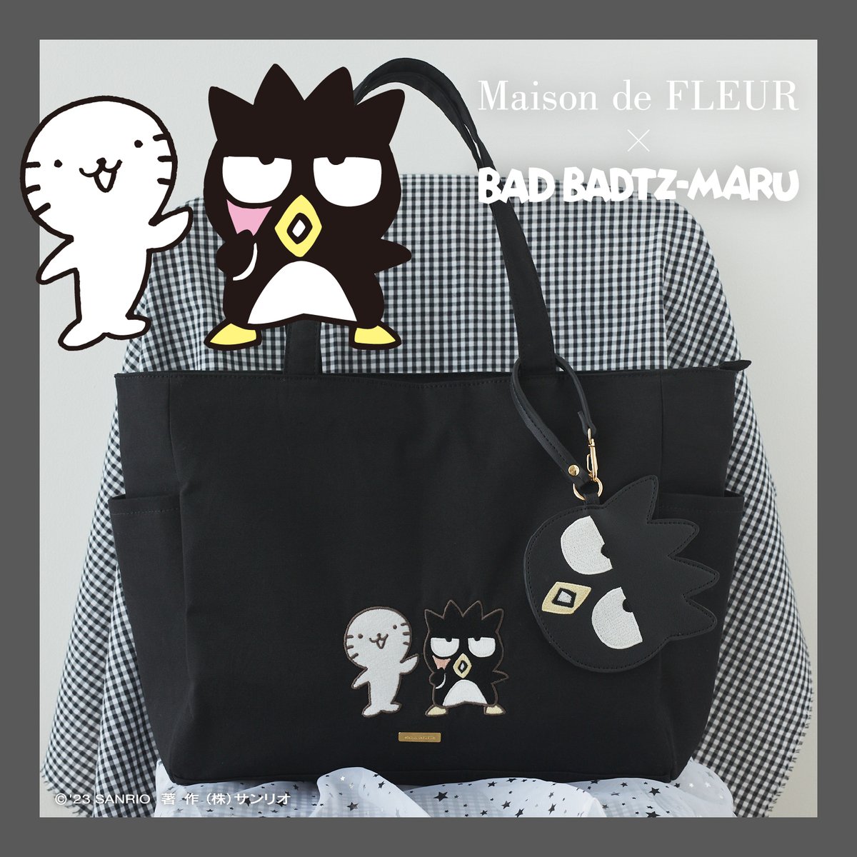バッドばつ丸30周年と4/1のお誕生日祝い★Maison de FLEURからブラックの生地にバッドばつ丸とグッドはな丸の刺繍を施したトートバッグや、ばつ丸形のパスケースが登場♪4/16(日)23:59まで公式通販ストライプクラブで受注受付中! sanrio.eng.mg/99e0f