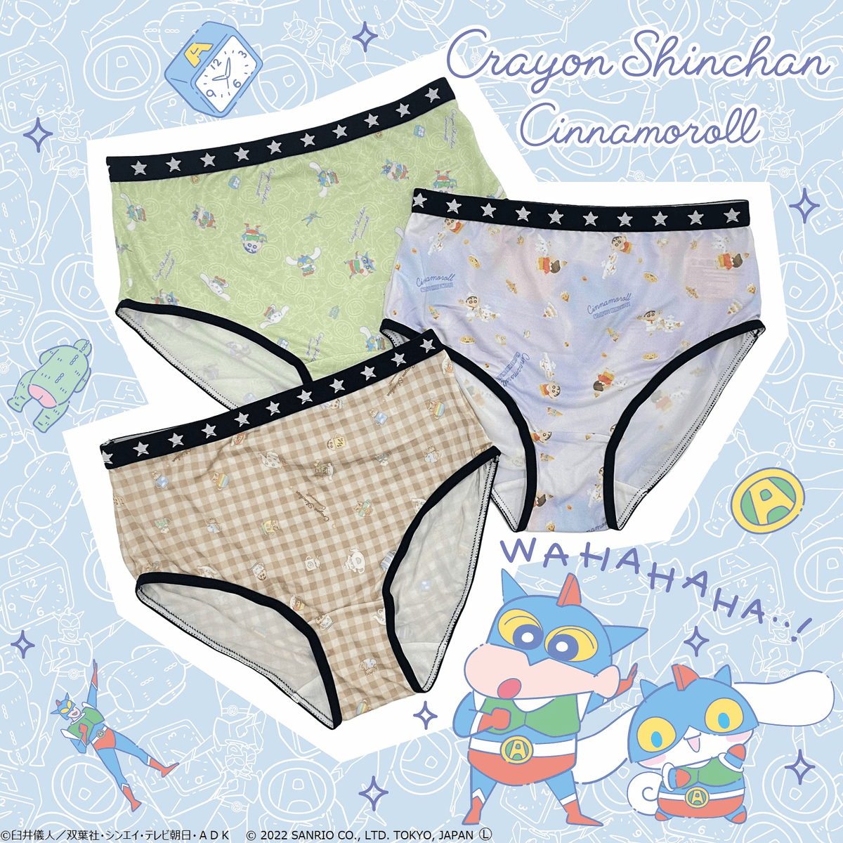 しまむらのレディース3枚組ショーツセットに新作が登場!今回はクレヨンしんちゃんとシナモロールのコラボデザインだよ♡しまむらの一部店舗としまむらオンラインストアで発売中!ぜひGETしてね★ sanrio.eng.mg/4b943