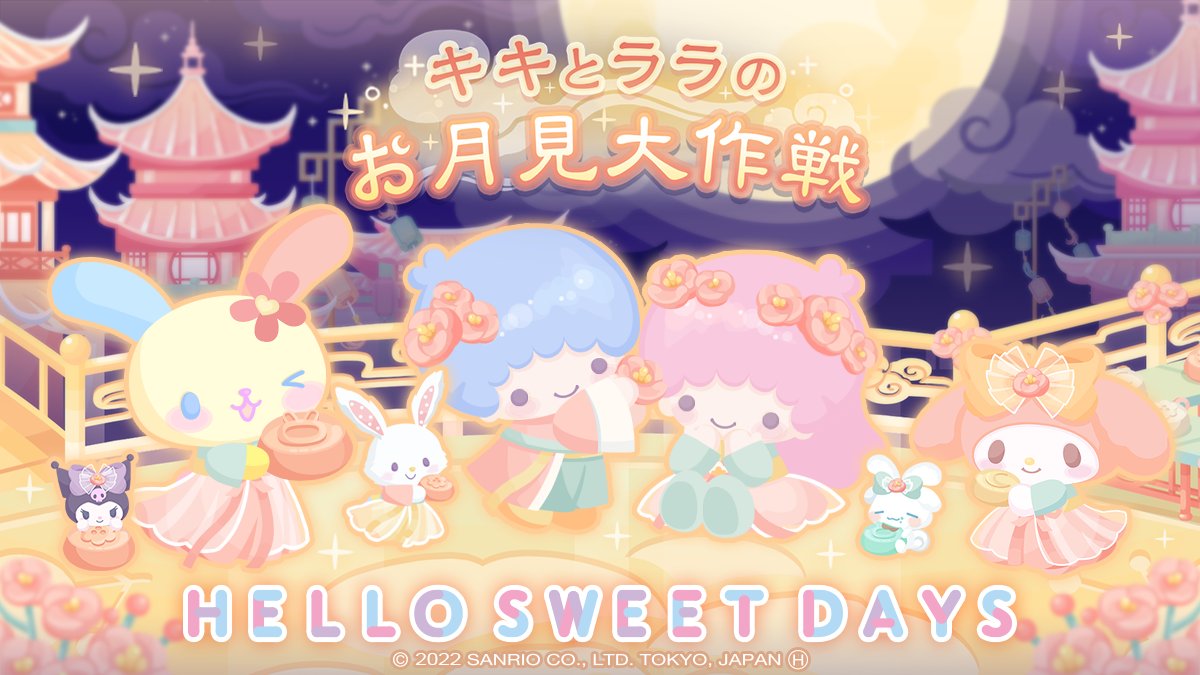 着せかえアバターアプリ「ハロースイートデイズ」でイベント「キキとララのお月見大作戦」を開催中☆満月が浮かぶ街ではお月見の準備で大忙し!?お月見団子を食べながら1年に1度の中秋の名月を過ごそう♪ sanrio.eng.mg/265e8