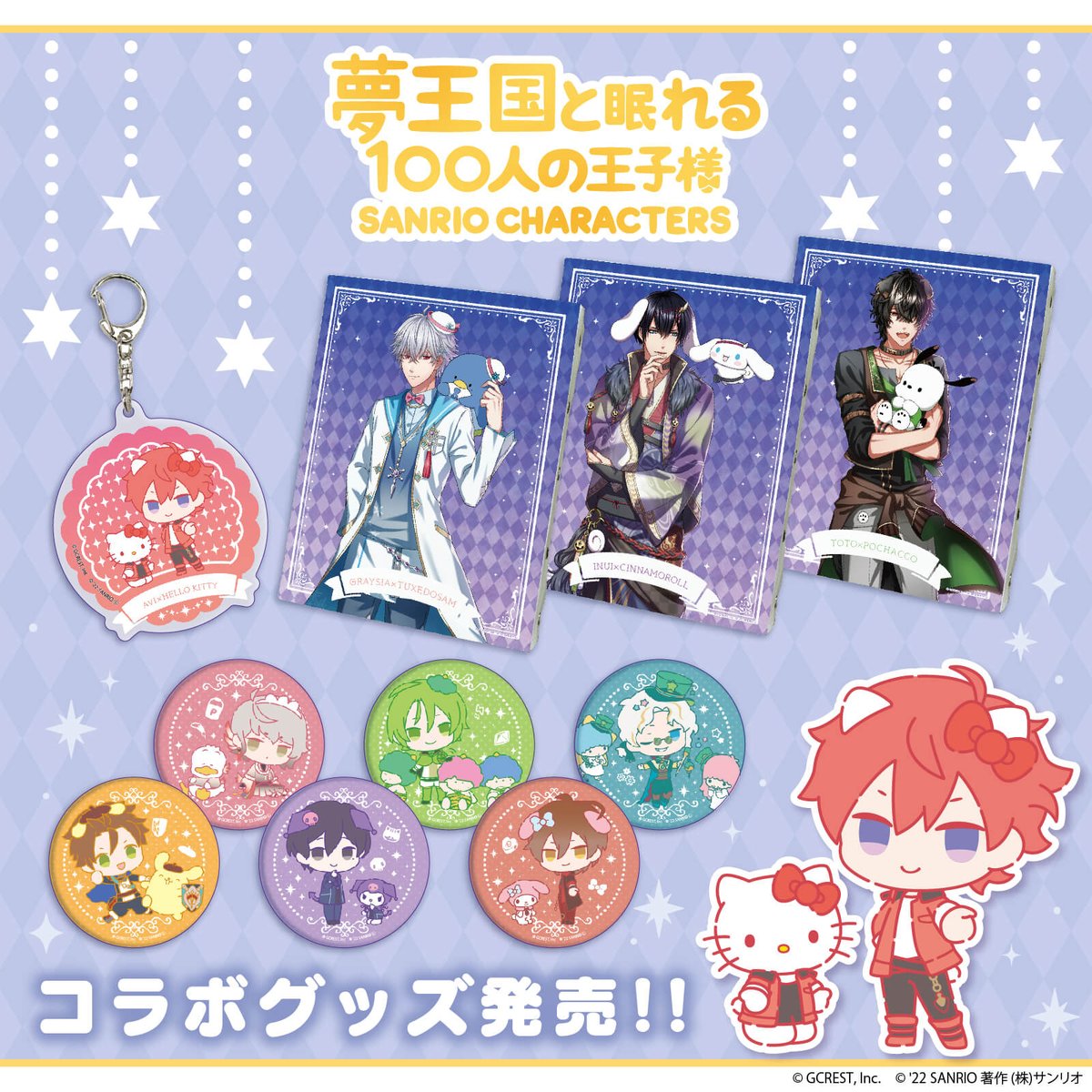 アプリゲーム「夢王国と眠れる100人の王子様」とサンリオキャラクターズのコラボグッズが発売☆コラボならではの衣装がキュート♡税込み2,200円お買い上げごとにポストカードを1枚プレゼント☆サンリオアニメストア池袋P’PARCO店と通販サイトで♪ sanrio.eng.mg/e5b56