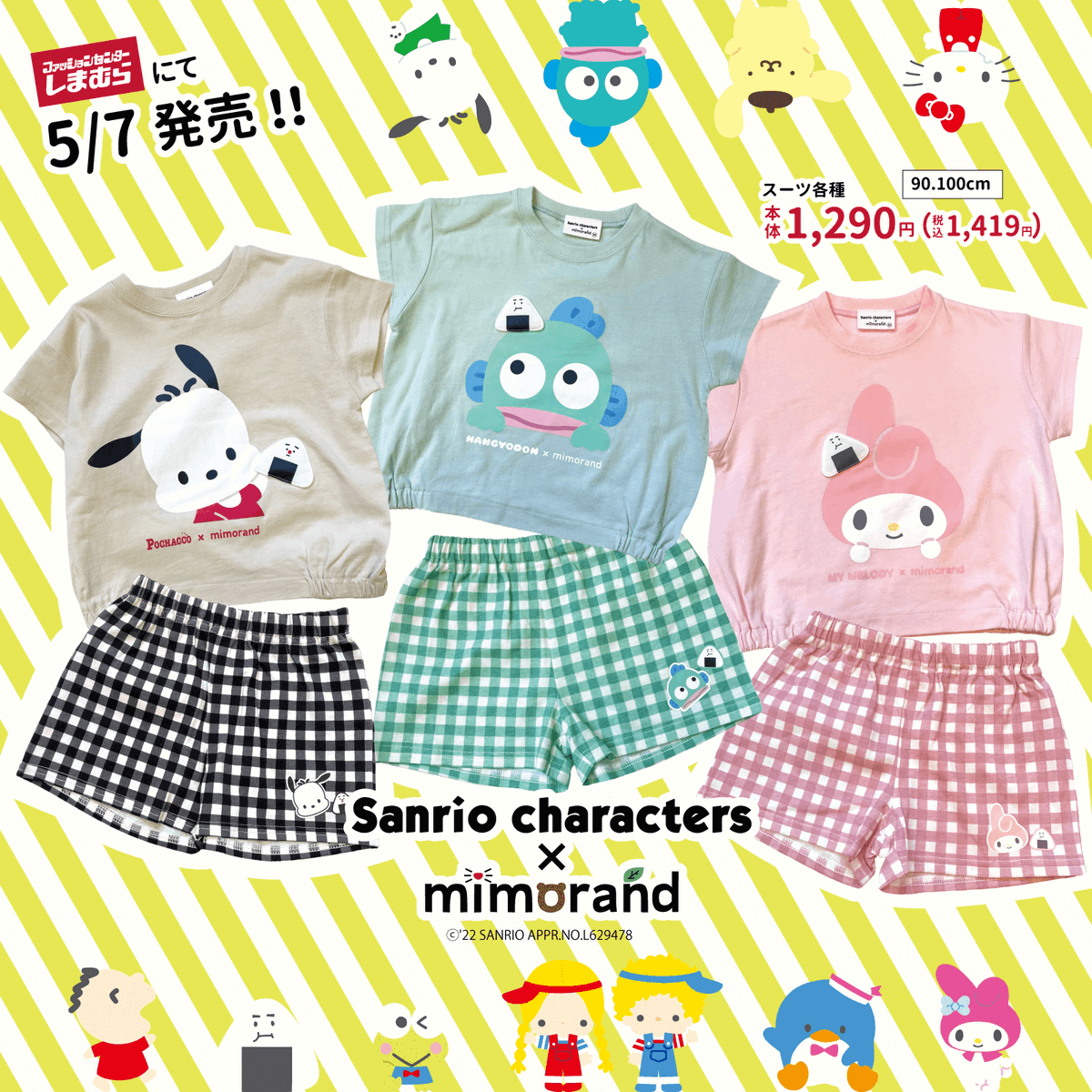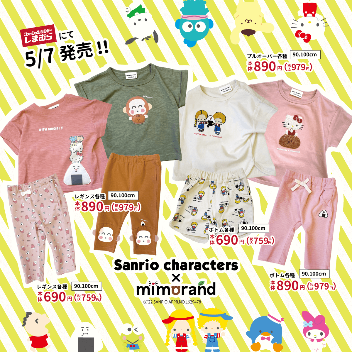 子ども服のmimorandで大人気のおにぎり・パンとサンリオキャラクターズのコラボアイテムが5/7(土)~しまむらに登場!ポップでキュートなラインナップにワクワクが止まらない♪詳細はmimorand公式Instagramで♡ sanrio.eng.mg/4b772