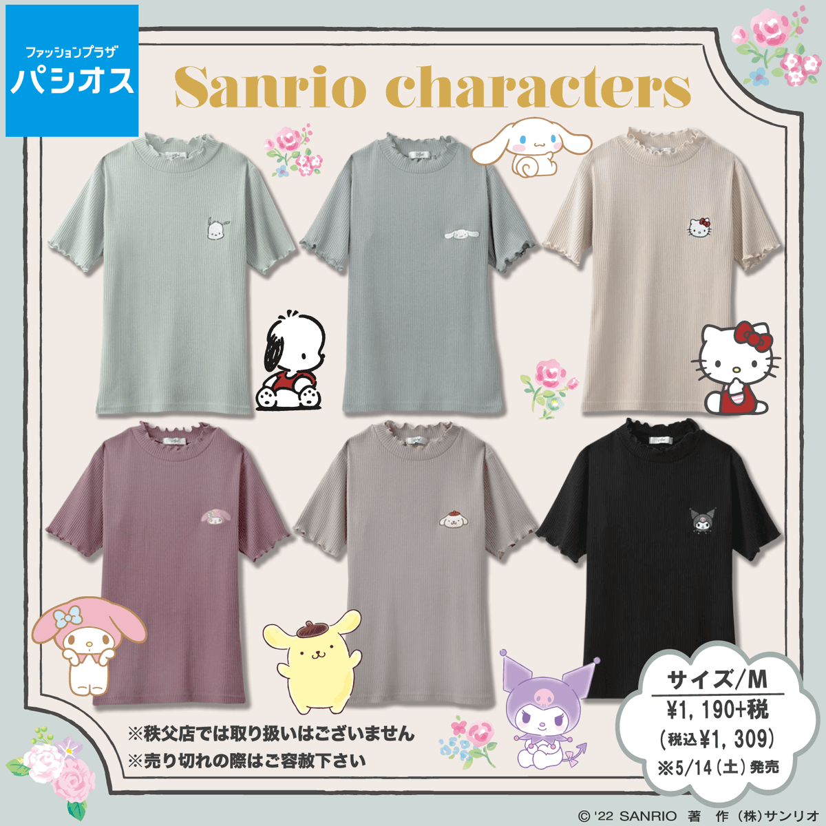 パシオスからサンリオキャラクターズのトップスが登場!くすみカラー×ワンポイント刺繍が大人かわいい♡キャラクターと一緒におしゃれコーデを楽しんじゃおう♪5/14(土)~店舗&ECサイトでチェック★ sanrio.eng.mg/00fdb