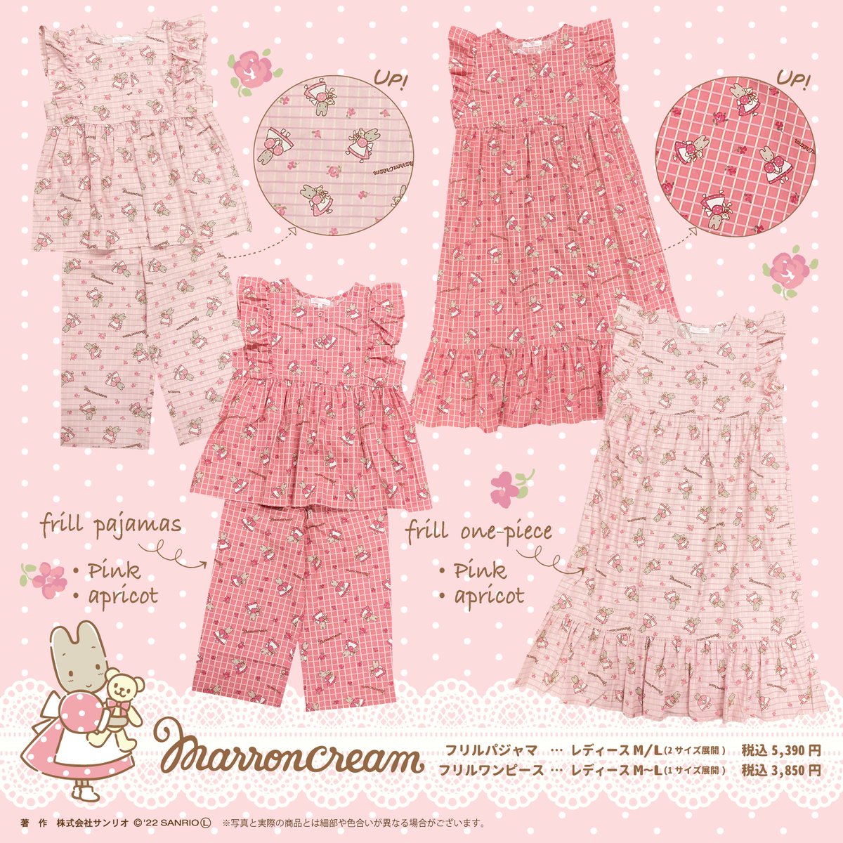 SAZAC(サザック)からレトロなデザインがかわいいマロンクリームのルームウェア2種が登場!肩のフリルがとってもエレガント♪これからの季節にぴったりなアイテムだよ♡母の日ギフトにもオススメ☆ sanrio.eng.mg/27f24