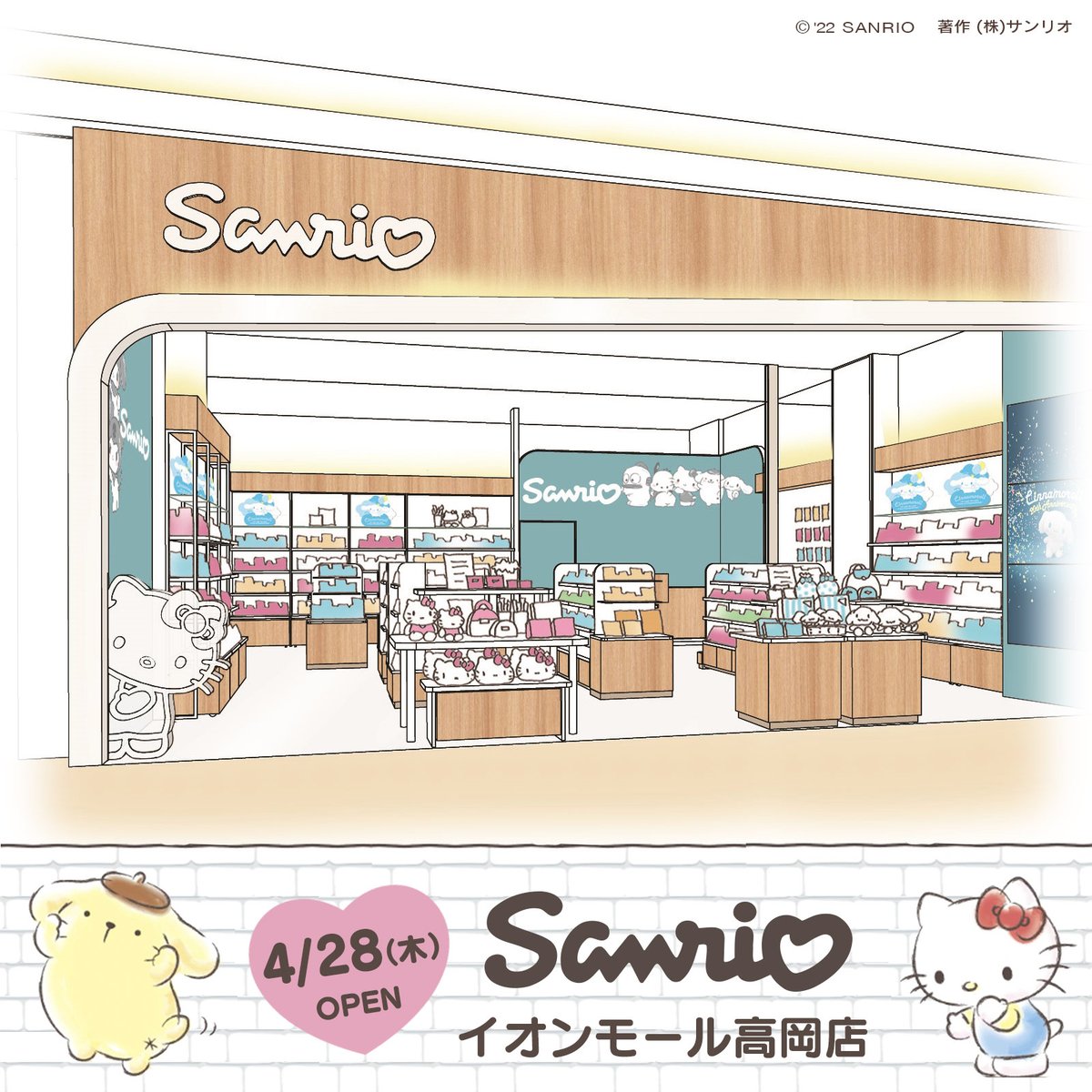 4/28(木)イオンモール高岡(富山)に「Sanrio イオンモール高岡店」がOPEN!日常の中の「きゅん♡」となる商品を集めたよ☆商品お買い上げでのノベルティプレゼントもあるので、ぜひ遊びにきてね! sanrio.eng.mg/33a75