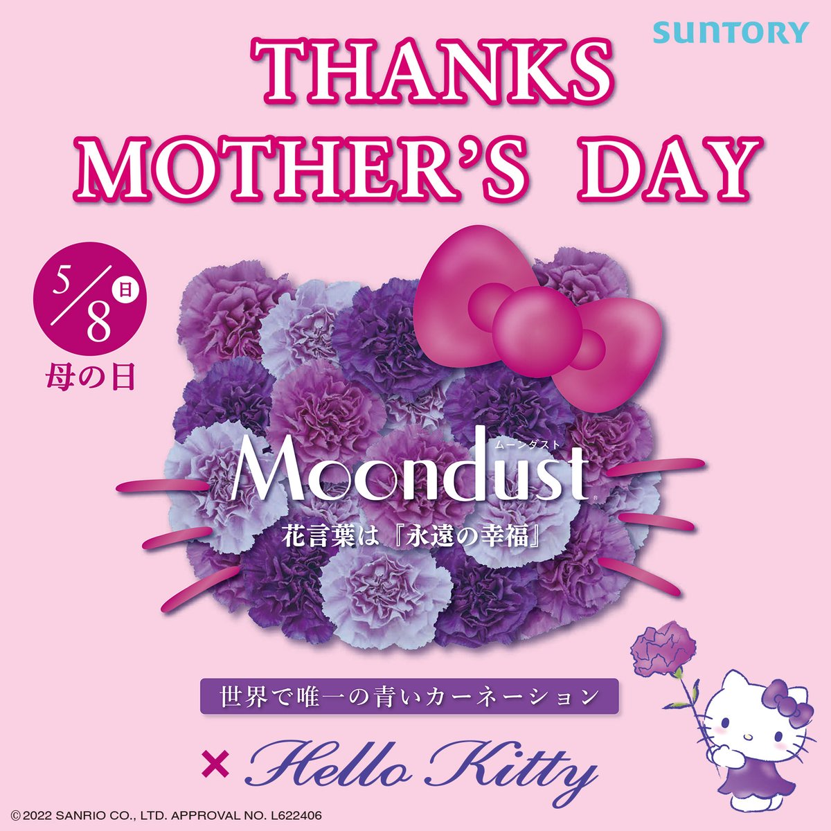 青いカーネーション「ムーンダスト」の母の日ギフトをハローキティが応援するよ★花言葉は“永遠の幸福”。上品な色味は母の日のプレゼントにぴったり♡全国のお花屋さんでね! sanrio.eng.mg/ce2cb