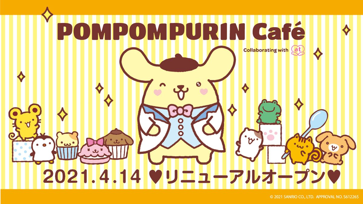 4/14(水)にポムポムプリンカフェ原宿店がメイドカフェ「あっとほぉーむカフェ」とのコラボカフェとしてリニューアルOPEN!パーティ会場をイメージした店内でプリンたちがお出迎え♡遊びにきてね! sanrio.eng.mg/d03cd