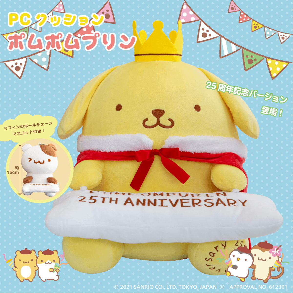 25周年を迎えたポムポムプリンを記念して「PCクッション ポムポムプリン 25th Anniversary Ver.」が登場!マフィンのマスコット付き♡プリンと一緒にリラックスしながらお仕事やお勉強を頑張ろう♪ sanrio.eng.mg/eee20