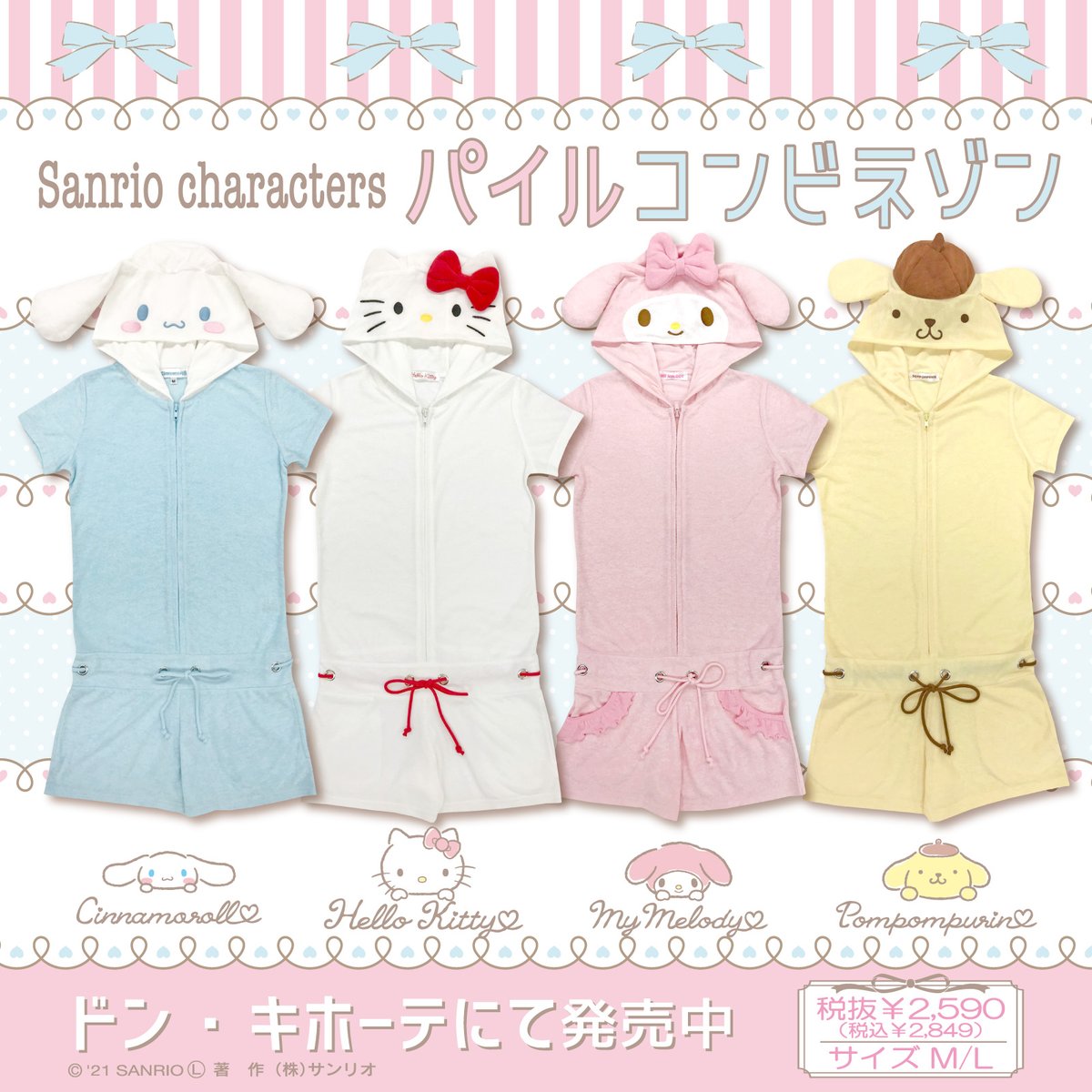 ドン・キホーテからサンリオキャラクターズのフード付きコンビネゾンが登場!これからの季節にピッタリなやわらかパイル素材♪お気に入りのキャラになりきっておうち時間をエンジョイしちゃおう♡ sanrio.eng.mg/c2955