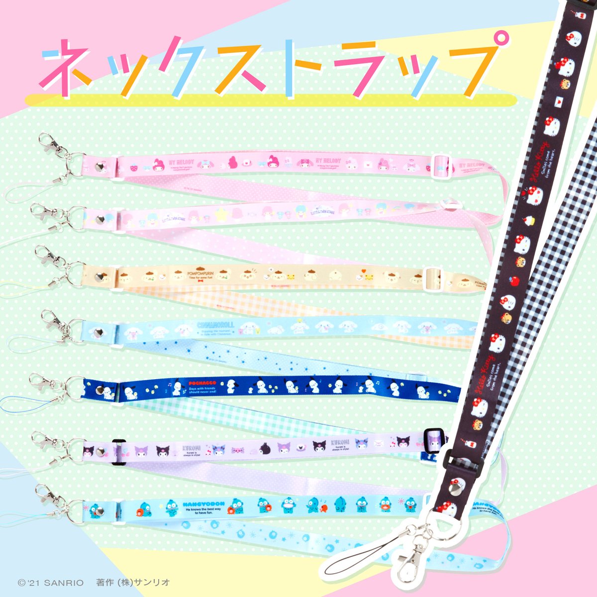 【ネックストラップ】ハンディファン、IDカード、防犯ブザーなど多用途に使える便利なネックストラップ☆お買い求めは、全国のサンリオショップまたはオンラインショップでね♡ sanrio.eng.mg/f8bf9