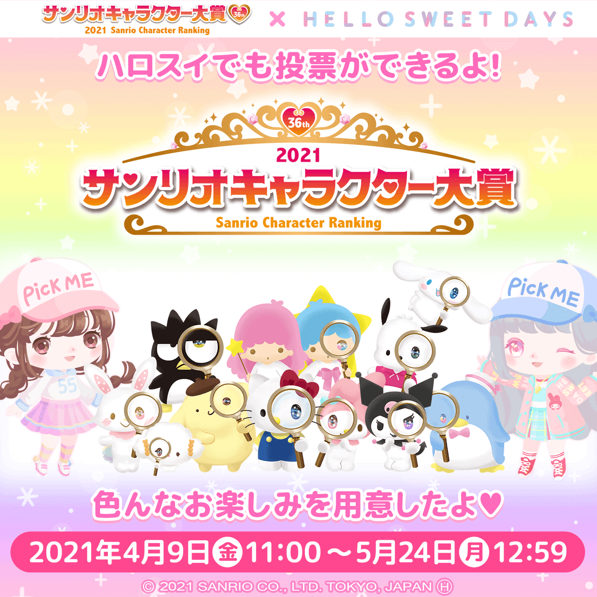 【2021年サンリオキャラクター大賞第1弾】4/9(金)から投票が始まるサンリオキャラクター大賞☆今年もかわいい戦いをにぎやかに盛り上げる関連グッズが登場するよ♪全国のサンリオショップでね♡ sanrio.eng.mg/15283