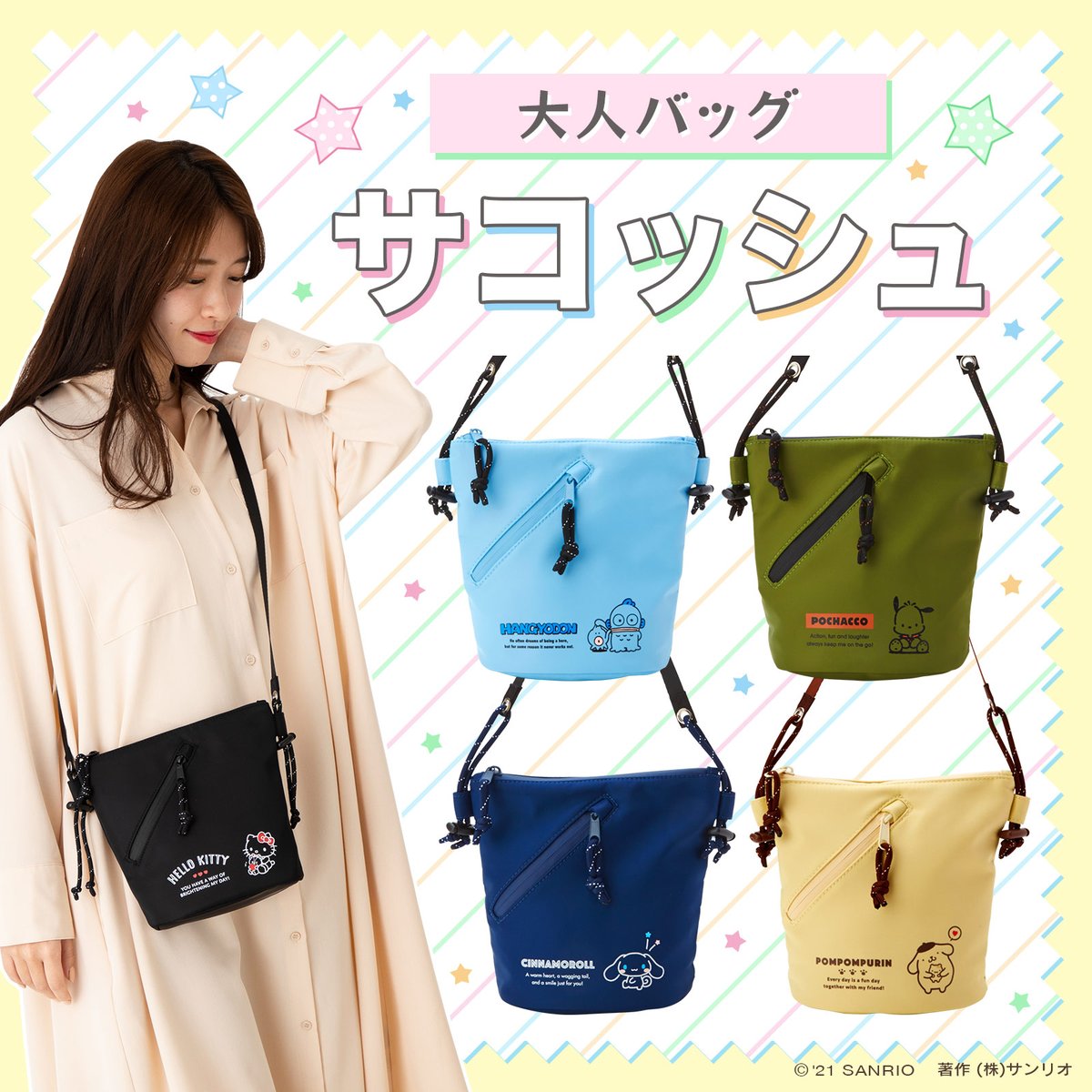 【大人バッグ サコッシュ】ちょっとお出かけする際に最適な丸底タイプのサコッシュが登場!撥水加工されているのも◎お買い求めは、全国のサンリオショップまたはオンラインショップでね♡ sanrio.eng.mg/00010