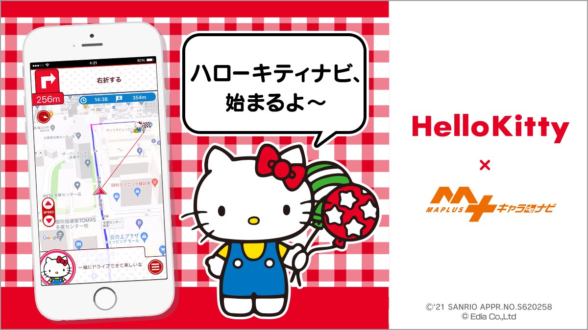 徒歩·カーナビ対応アプリ「MAPLUSキャラdeナビ」とハローキティがコラボ☆キティが道案内に挑戦!?キティならではのセリフや特別なボイスもCHECK♡いつもの道をキティと一緒に楽しく出かけよう♪ sanrio.eng.mg/b8c77
