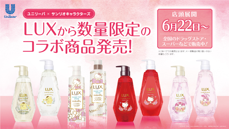 ユニリーバとサンリオキャラクターズがコラボ!LUXから数量限定コラボ商品が本日から登場だよ。今回だけの「ラックススーパーリッチシャインハローキティ」はキティの好きなリンゴの香り♪詳細→ sanrio.eng.mg/b3c74