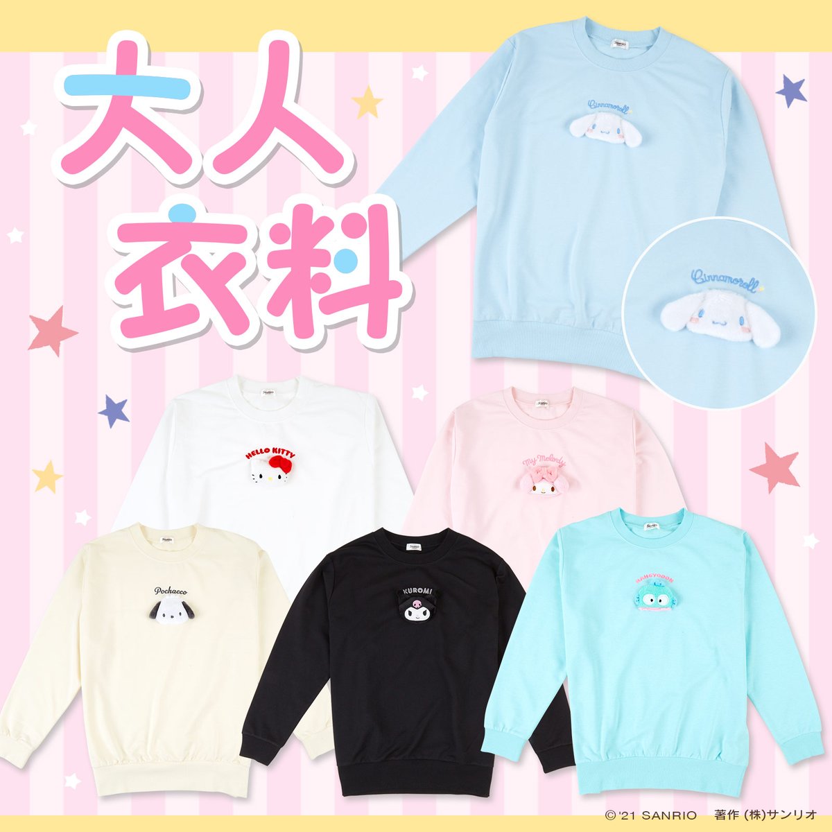 【大人衣料】部屋着としても、ちょこっと外出でも使える全6キャラのオーバーサイズトレーナー☆お買い求めは、全国のサンリオショップまたはオンラインショップでね♡ sanrio.eng.mg/90141