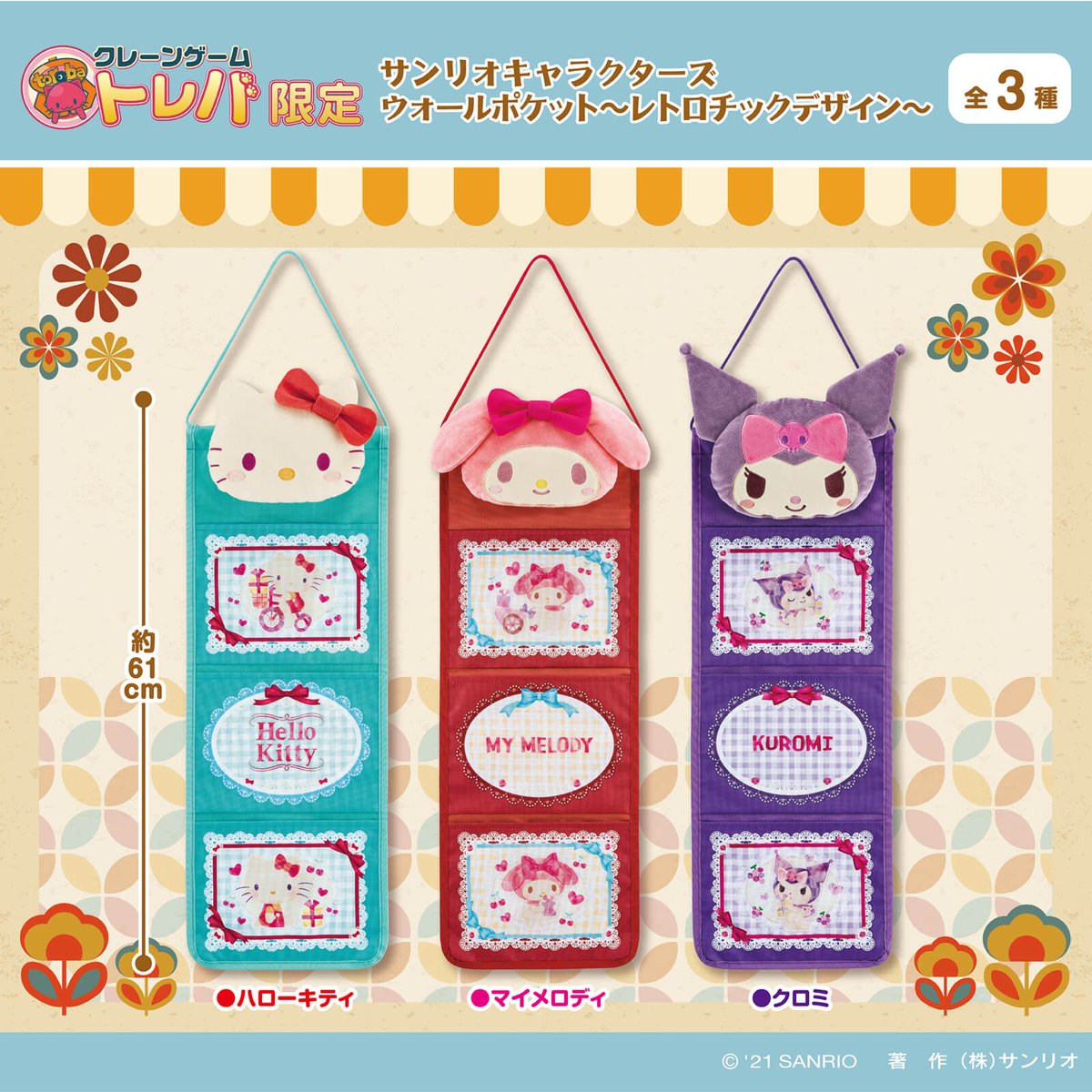 インターネットを通して本物のクレーンゲームが楽しめるサービス「トレバ」の景品にレトロデザインがキュートなサンリオキャラクターズのウォールポケットが登場!3つのポケットが付いていて散らかりがちな小物をかわいく収納できる♪12/20(月)〜順次投入予定。GETしてね! sanrio.eng.mg/50916