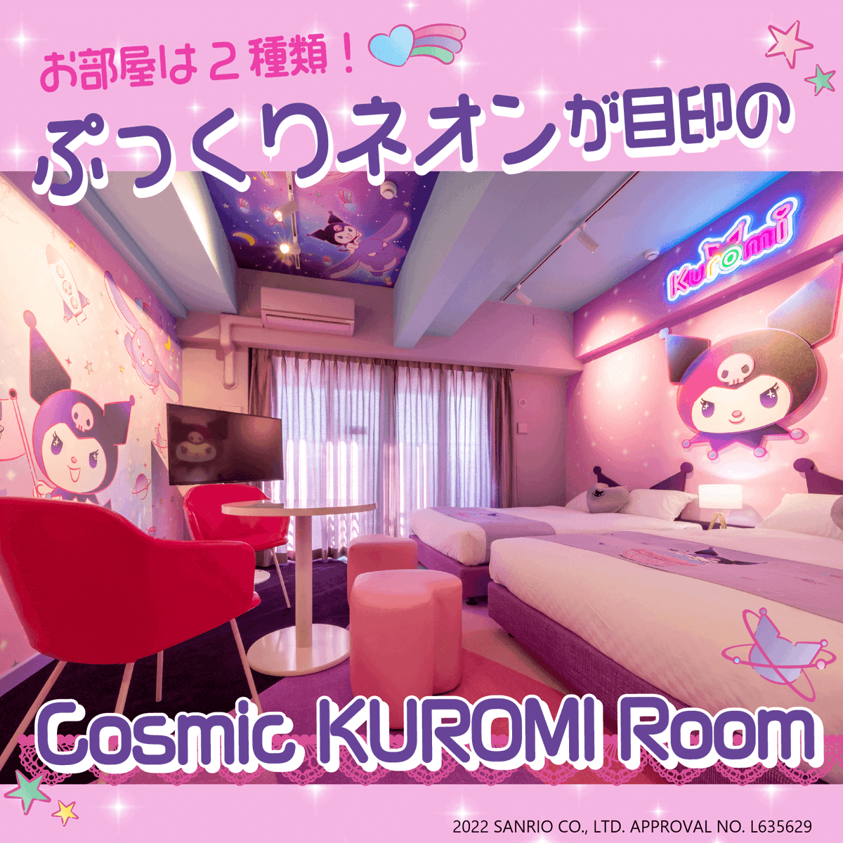 京都市内の宿泊施設「RESI STAY(レジステイ) THE KYOTO」に「クロミ ルーム」がオープン!ポップなインテリアがかわいい「コズミック クロミ ルーム」と、おしゃれしたクロミに会える 「ゴスロリ クロミ ルーム」の2部屋だよ♡ sanrio.eng.mg/10a7a