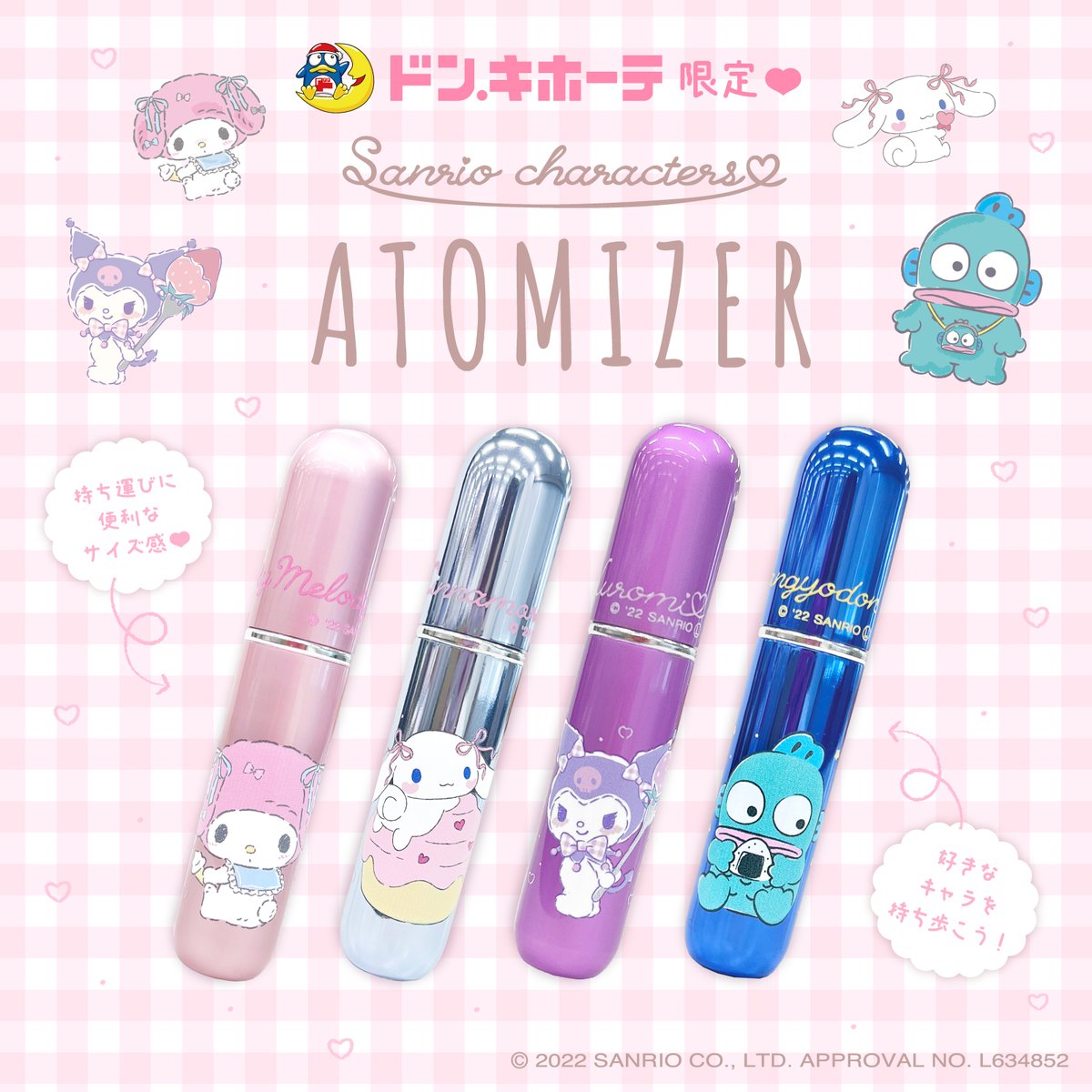 ドン・キホーテ限定!サンリオキャラクターズのアトマイザーが12/24(土)に登場♡コンパクトで持ち運びに便利だから、好きなキャラクターと一緒にお出かけできるよ☆※取り扱いのない店舗もございます。 sanrio.eng.mg/293ea