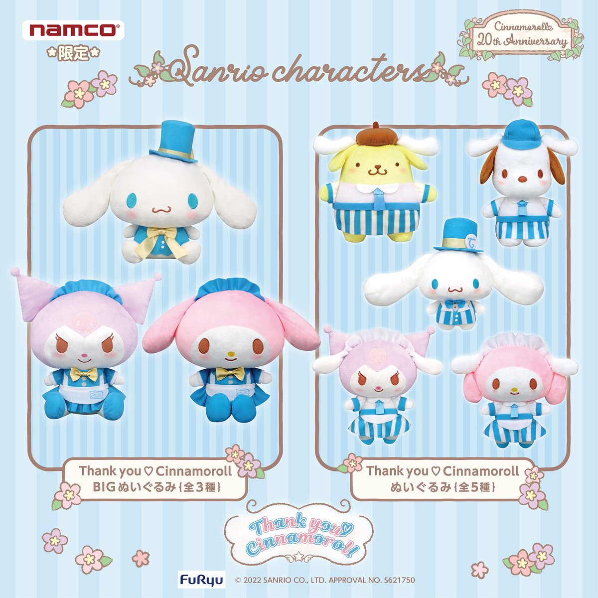 今年、シナモロールはデビュー20周年!ナムコ限定アミューズメント専用景品に「Thank you ♡ Cinnamoroll」シリーズが登場★BIGぬいぐるみなどキュートなアイテムが盛りだくさん♪1/21(金)~全国のナムコのお店に順次登場! sanrio.eng.mg/bddc3