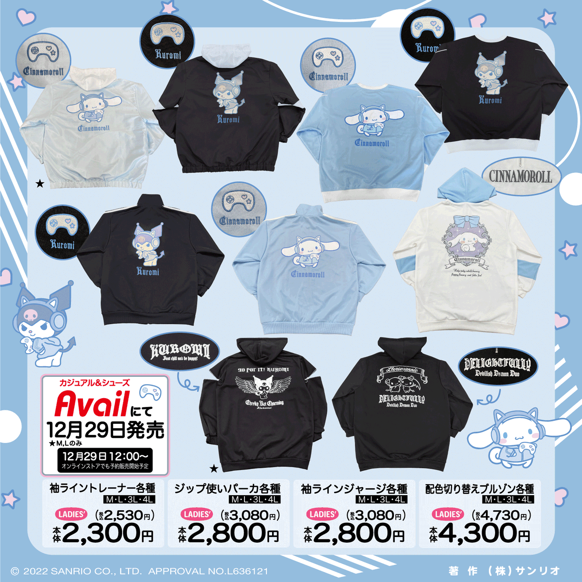 12/29(木)~全国の #アベイル にゲーミングシリーズやサガラ刺しゅう、Netflixぐでたまデザインが登場!一部アイテムはオンラインでも同日12:00~予約販売開始予定→ sanrio.eng.mg/a36e3 店舗→ sanrio.eng.mg/881cc ※点数制限は画像をご確認ください。