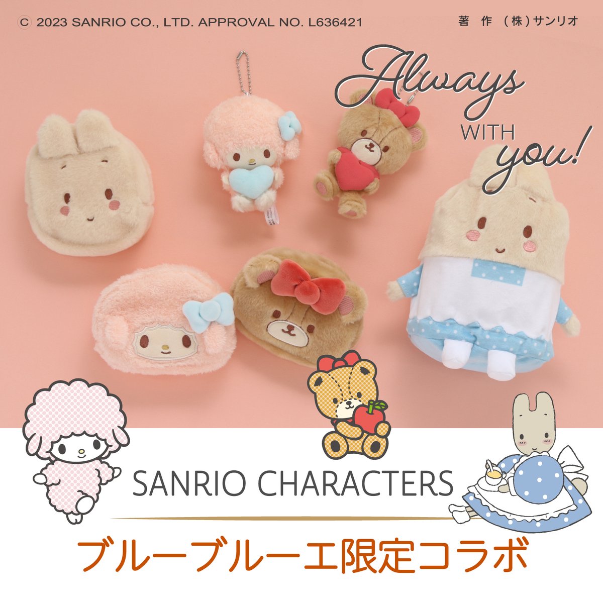 ブルーブルーエからマイスウィートピアノ・タイニーチャム・マロンクリームのコラボグッズが登場♪ふわふわのワッペンやフェイス形のグッズがかわいいね♡1/21(土)~順次発売!オンラインストアは一部予約受付中☆ sanrio.eng.mg/84906