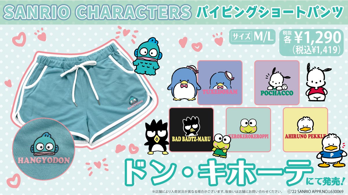 キャラクターの顔がドーン!と入ったTシャツと配色がキュートなショートパンツが、ドン・キホーテ限定で販売中★Tシャツはぷっくり発泡プリントがかわいいね♡ショートパンツもこれからの季節にピッタリ♪ sanrio.eng.mg/e0681