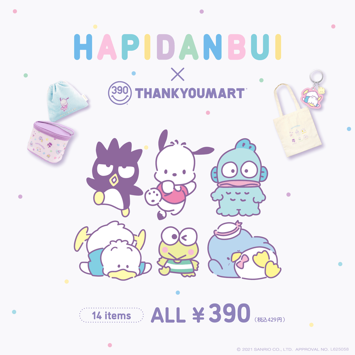 まもなくデビュー2周年を迎えるはぴだんぶいとサンキューマートのコラボグッズが初登場★全国のサンキューマートのお店で11月中旬~順次販売!最新の入荷情報は各店舗のTwitterアカウントをCHECK♪ sanrio.eng.mg/c6a2d