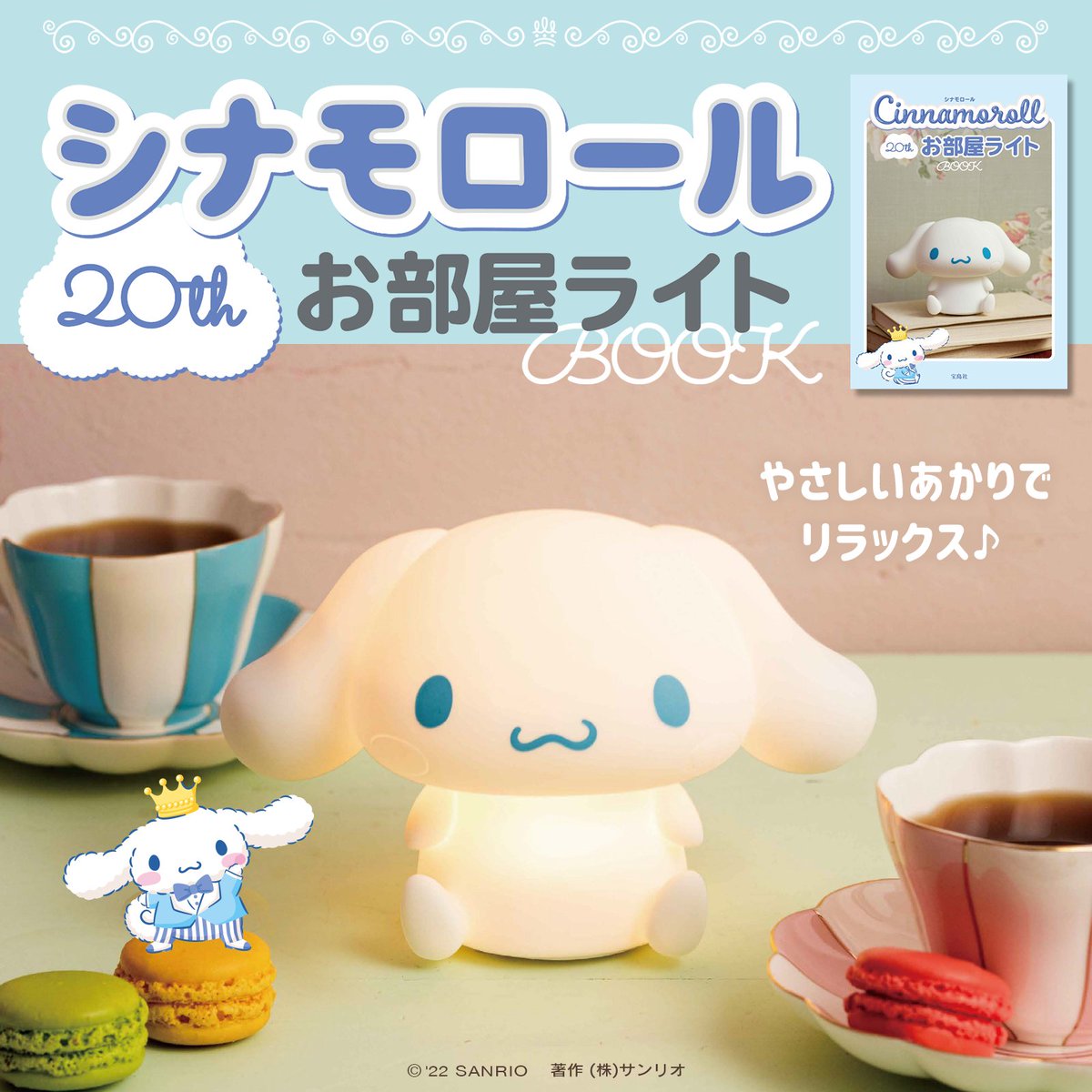 8/18(木)宝島社から『シナモロール 20th お部屋ライトBOOK』が発売!2022年サンリオキャラクター大賞で1位を獲得したシナモンのかわいくて便利なお部屋ライト☆手のひらサイズ&コードレスで場所を選ばず使えるよ!チェックしてね♪ sanrio.eng.mg/5c298