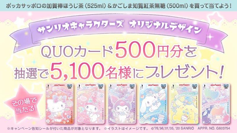 ポッカサッポロの加賀棒ほうじ茶(525ml)&かごしま知覧紅茶無糖(500ml)を買って当てよう!サンリオキャラクターズのQUOカードを抽選で5,100名様にプレゼント♪12/13(日)23:59応募締切。詳細→ sanrio.eng.mg/e7ebb