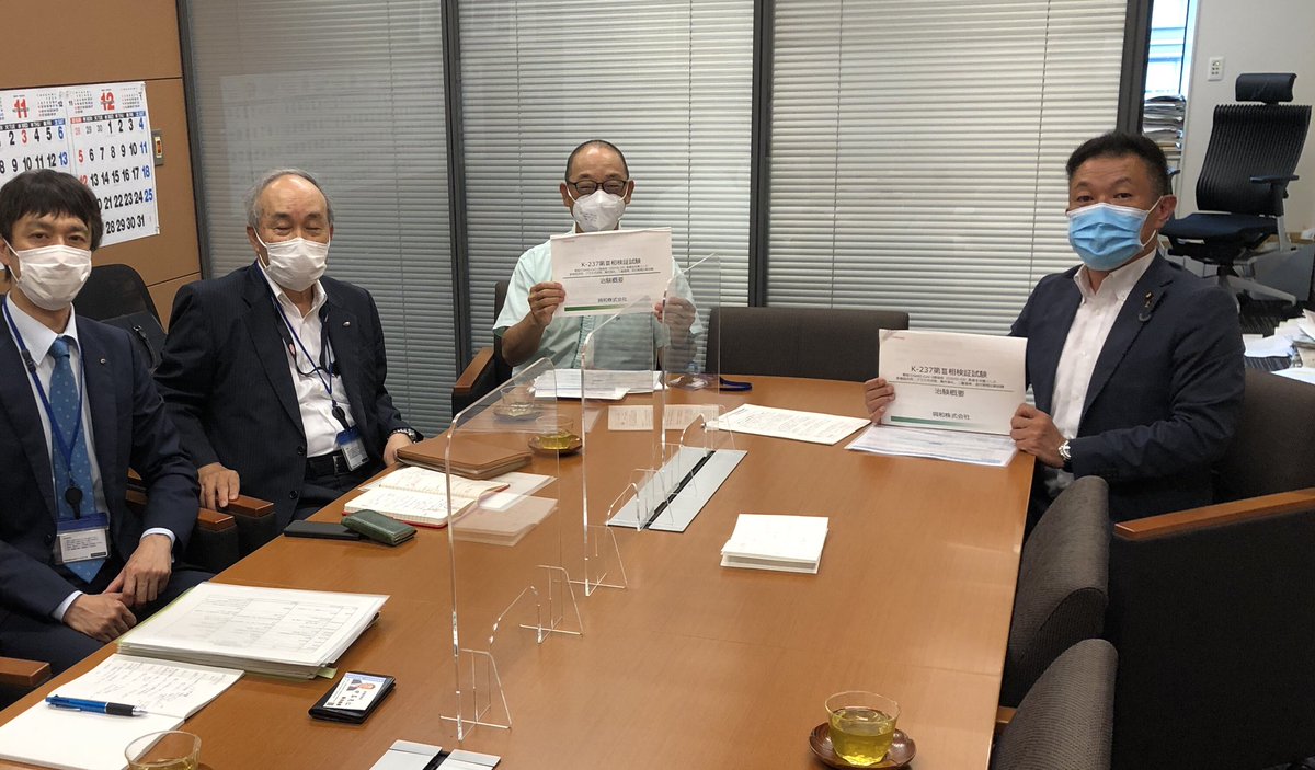 イベルメクチンの臨床試験開始を発表した株式会社「興和」の担当者の方々、北里大学研究所感染制御研究センター長の花木秀明先生と、今後のイベルメクチン承認に向けた治験概要の説明を伺いつつ、今後の進め方について意見交換。