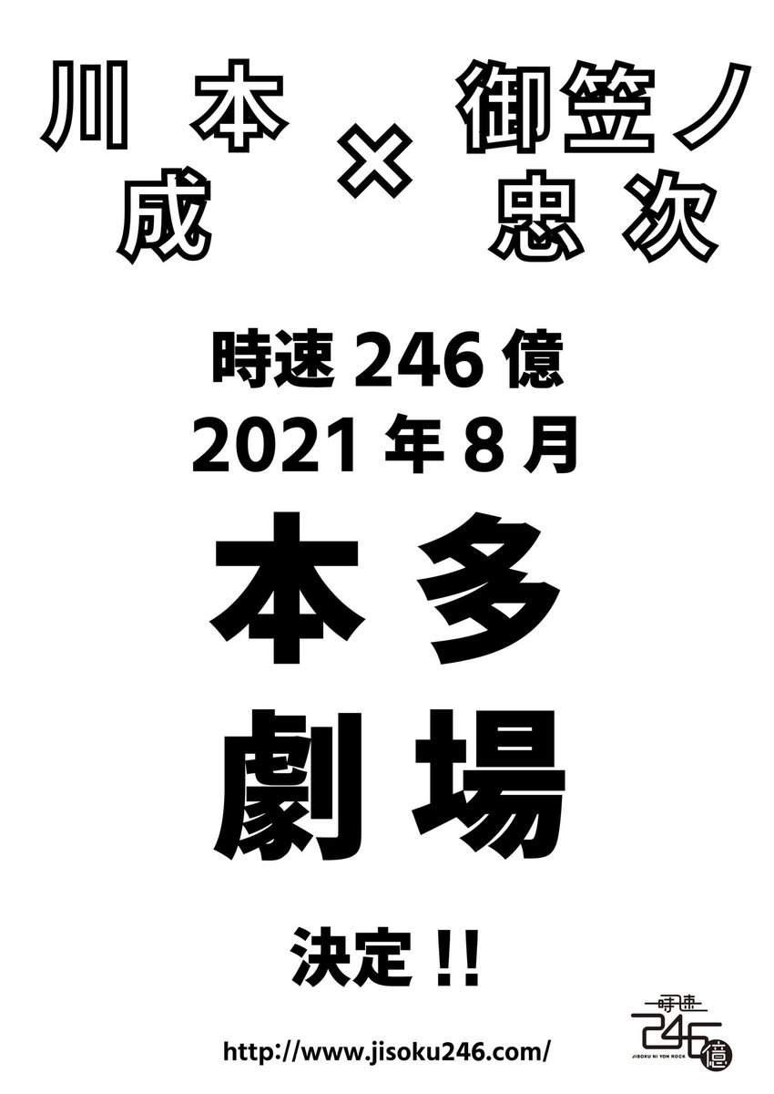 時速246億主宰 川本成がホストとなり、演劇界で活躍する皆様をお招きしオンライントークを繰り広げます!
