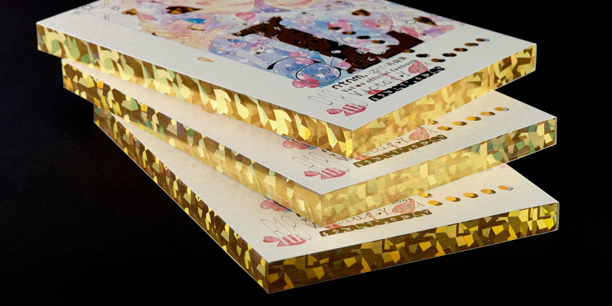 オプション・特殊加工に天金加工(三方金)を追加しました。ピカピカに光る輝きは積み上げただけで金字塔です。大変納期を頂く加工ですので、イベント3ヶ月以上前のお問い合わせをお願いいたします。 bit.ly/2QUpOQI