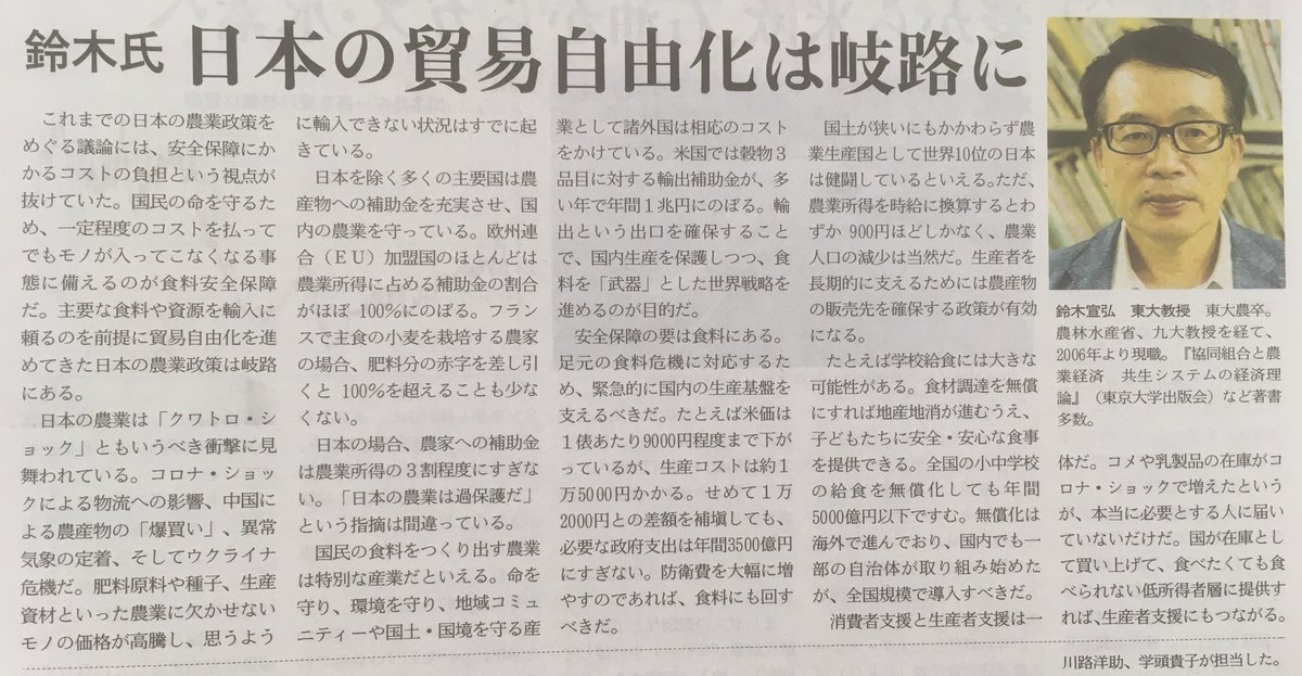 東京大学の鈴木宣弘教授「もう輸入は止まって来てます。…食糧危機真っただ中」 ~安全安心な本物を作ってくださっている生産者の皆さんと、しっかり自分たちが結びついて、その安心安全なものを自分たちが食べて買って支える、このネットワーク作りが非常に重要