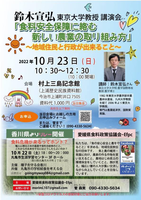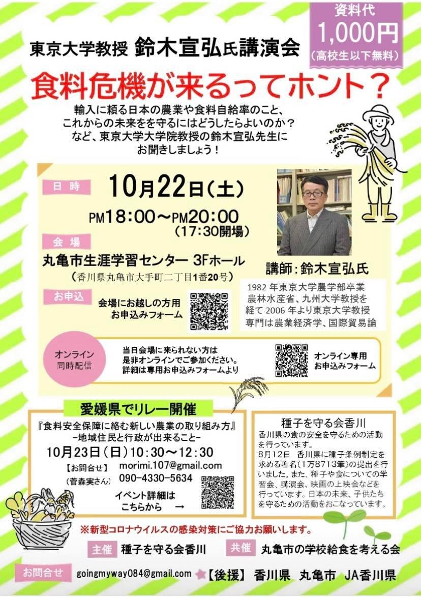 【ご理解下さい】今,農,食,命を守るため超党派の国民運動が不可欠.10月から月20回超ペースで全国回ります.福岡,長野,和歌山,徳島,札幌,茂原,四日市,狭山,香川,愛媛,中野,滋賀,徳島,宮城,...JA,れいわ,立憲,参政党,時事通信,生クラ,コープ自然派,あいコープ宮城,市民団体,農民連,農業会議...詳細は後に