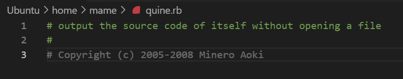 次のサイトを開いて、cd .Quine と入力し、さらに ruby CML_quine.rb を打ち込めば動きます。Quine の前のピリオドを忘れないこと。