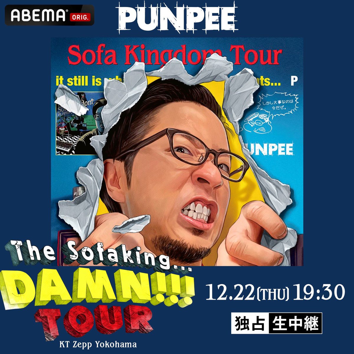 12/22(木)19:30より、ABEMA HIPHOPchにてPUNPEE "The Sofaking... Damn!!! Tour"が生配信されます。会場のチケットはソールドしています。
