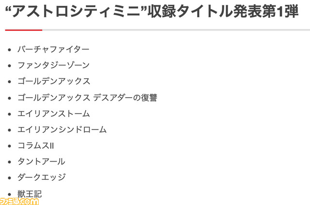 HDMIでテレビ出力もでき、別売りパッドでふたりプレイも可能。収録タイトル36本のうち『バーチャファイター』など10本が発表された