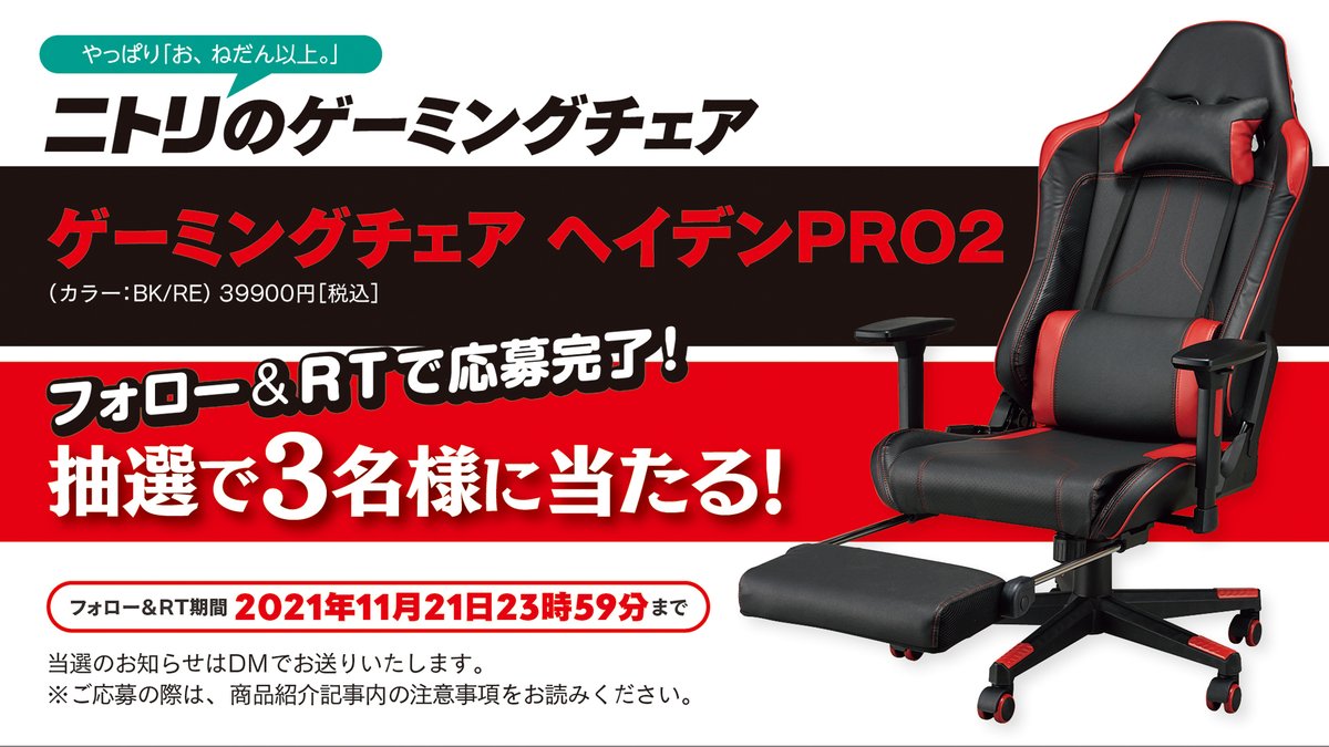 ニトリの“ゲーミングチェア ヘイデンPRO2”を抽選で3名様にプレゼント!