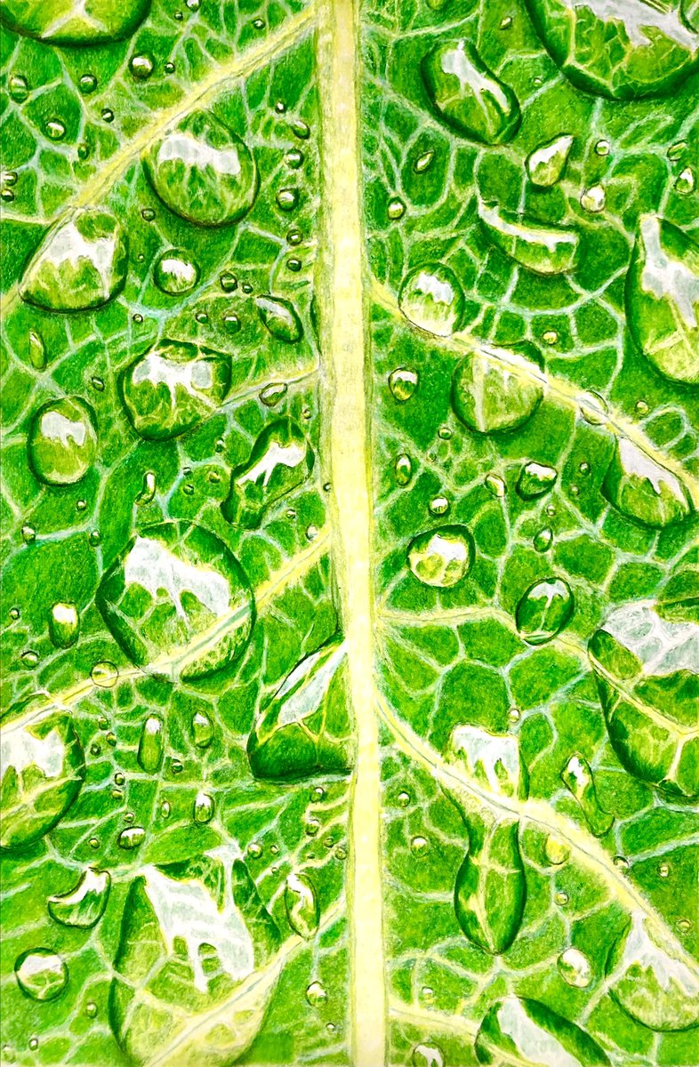 色鉛筆で葉っぱと水滴描きました✏️ 今日誕生日なのでいいねとリツイートしてくれると嬉しいです🤗