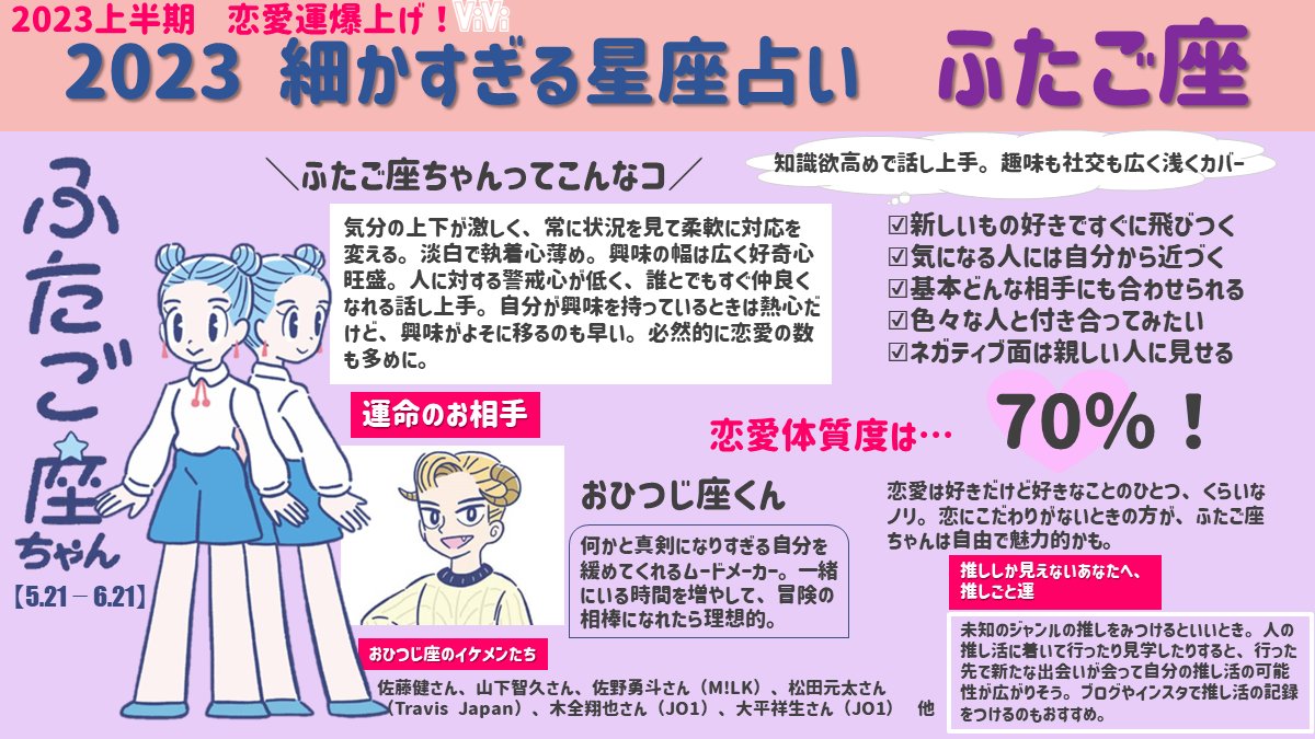 【ふたご座編・細かすぎる星座占い】ふたご座のみんな注目!2023上半期の運勢をめっっっっっちゃ細かくまとめました♡今期の恋は大恋愛になる予感…vivi.tv/post318273/?ut…
