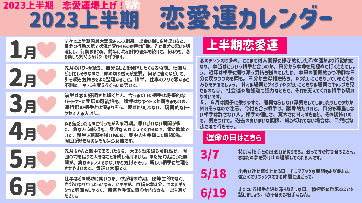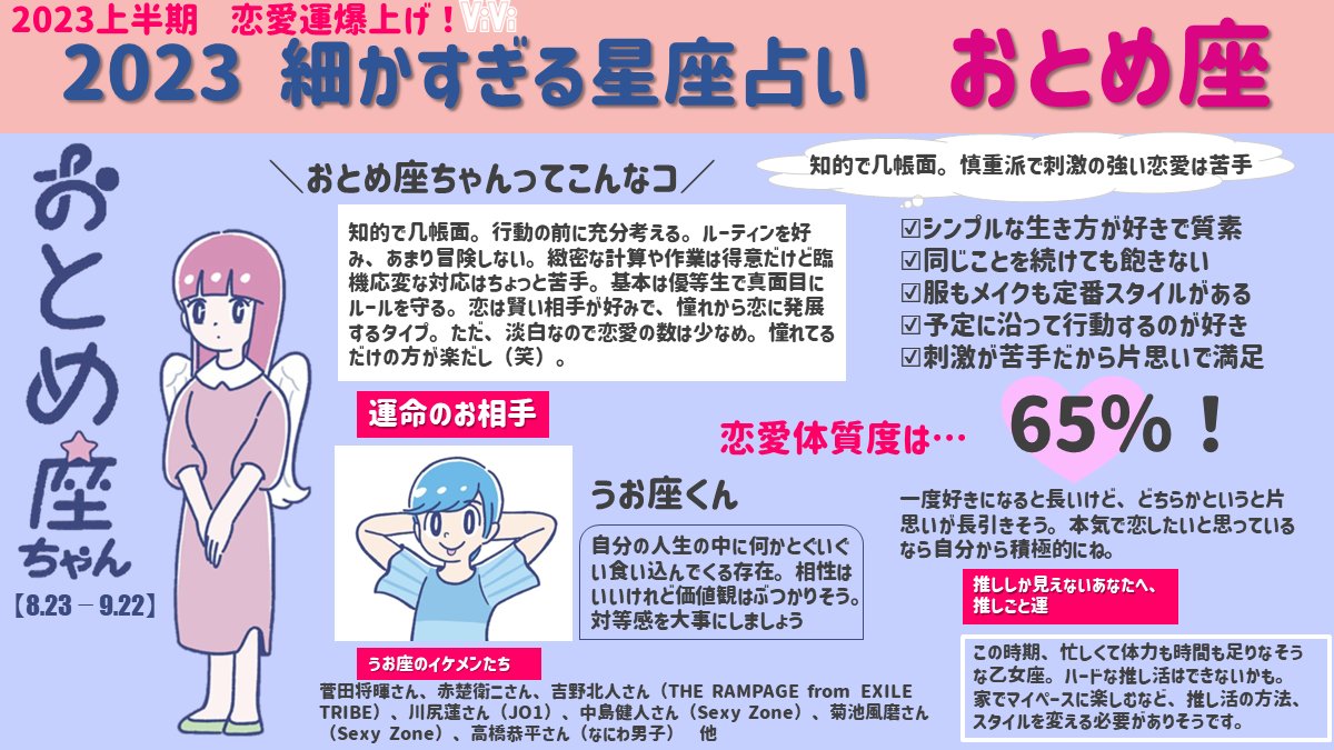 【おとめ座編・細かすぎる星座占い】おとめ座のみんな注目!2023上半期の運勢をめっっっっっちゃ細かくまとめました♡チャンスは多めだけど本命を見極めないと失敗しがち…!?vivi.tv/post318296/?ut…
