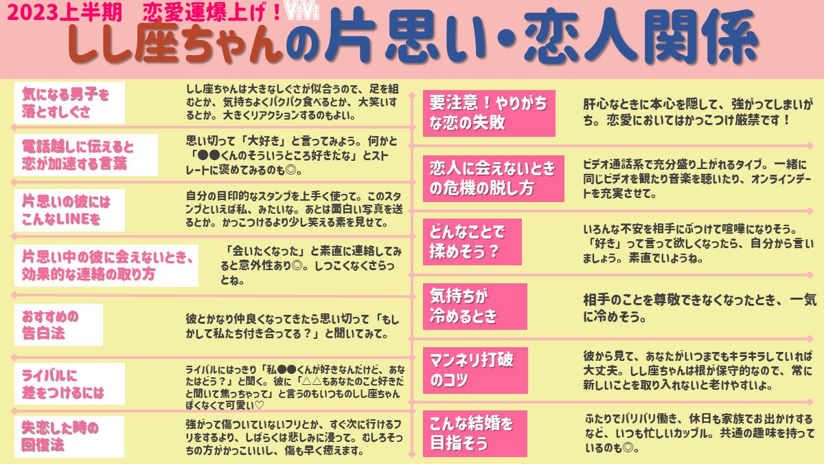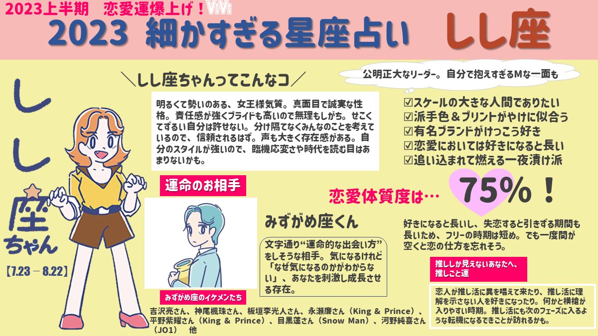 【しし座編・細かすぎる星座占い】しし座のみんな注目!2023上半期の運勢をめっっっっっちゃ細かくまとめました♡本音で話すことで相手と急接近な予感…!vivi.tv/post318280/?ut…