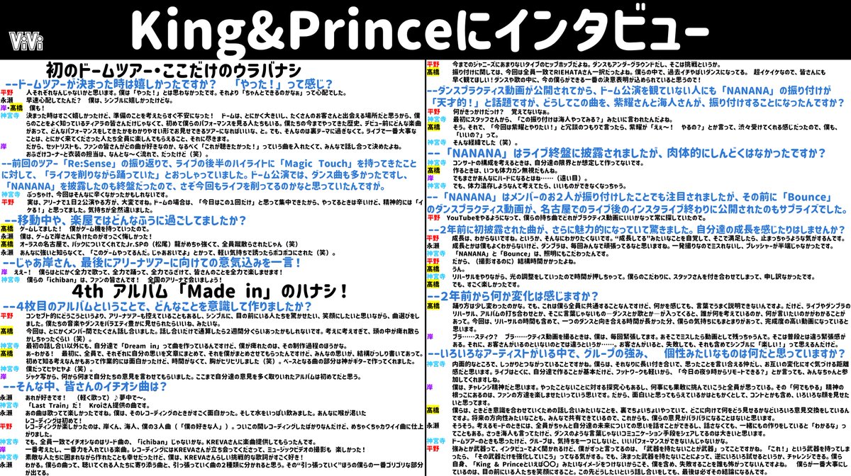 【King&Prince】キンプリに「アルバム」のこと前回の「ドームツアー」のことを聞いちゃいました!!とにかくファンへの愛に溢れてて泣ける!