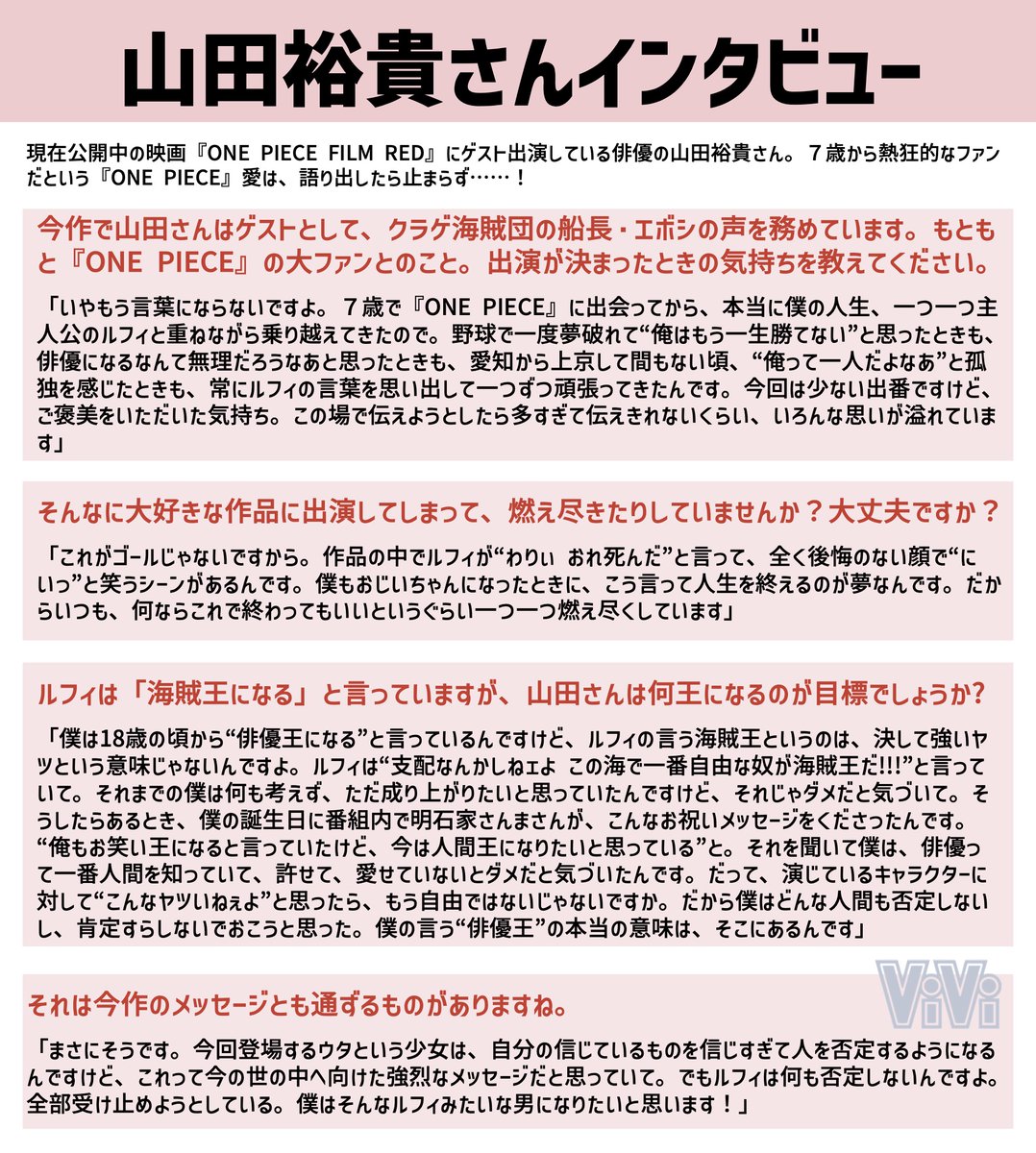 『ONE PIECE FILM RED』にゲスト出演している山田裕貴さん(@00_yuki_Y )のインタビューまとめました!7歳から続く『ONE PIECE』愛をたっぷり聞いちゃいました...!