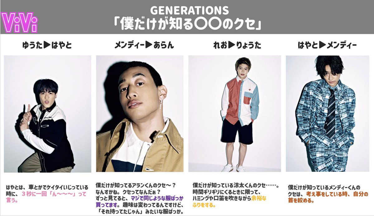 #GENERATIONS (@generationsfext)のみんなが、メンバーそれぞれの「僕だけが知る〇〇のクセ」を教えてくれたよ〜〜!!意外な一面にキュン…♡