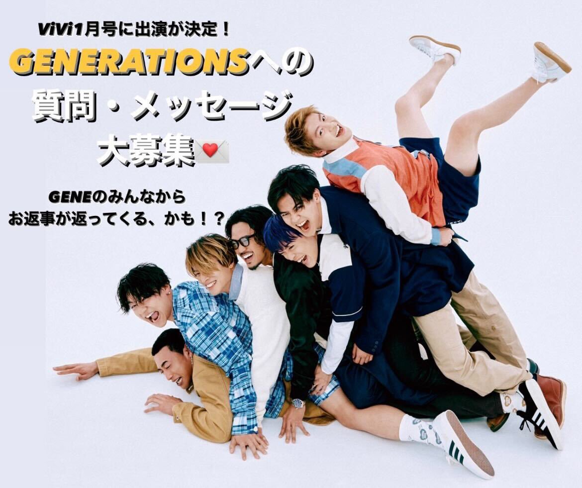 【大募集】ViVi1月号(11/22発売予定)にGENERATIONSの出演が決定!メンバーへのメッセージ・質問などを募集します。GENEからお返事がくるかも!?DREAMERSのみなさん、急いで〜😆