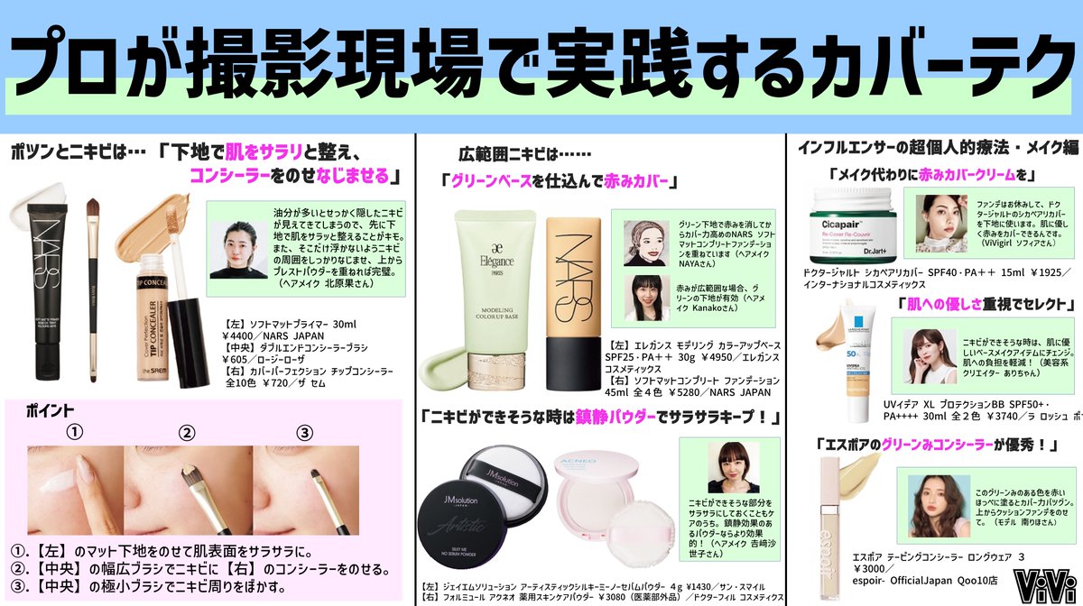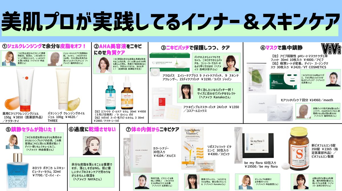 【ニキビケアまとめ】「ニキビができちゃったけど、忙しくて皮膚科にいけない…」とか「どうしてもニキビを隠したい…」ってときに、プロやモデルがしているテクニックからケアアイテムまでぜーんぶまとめました!