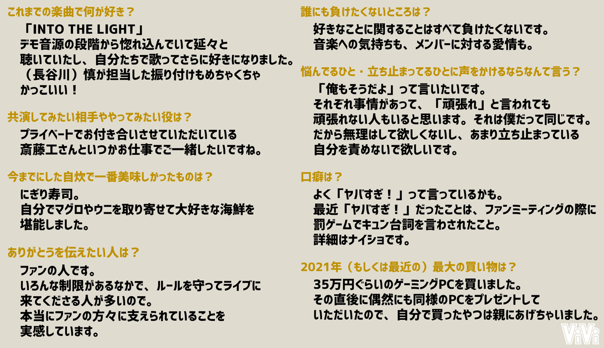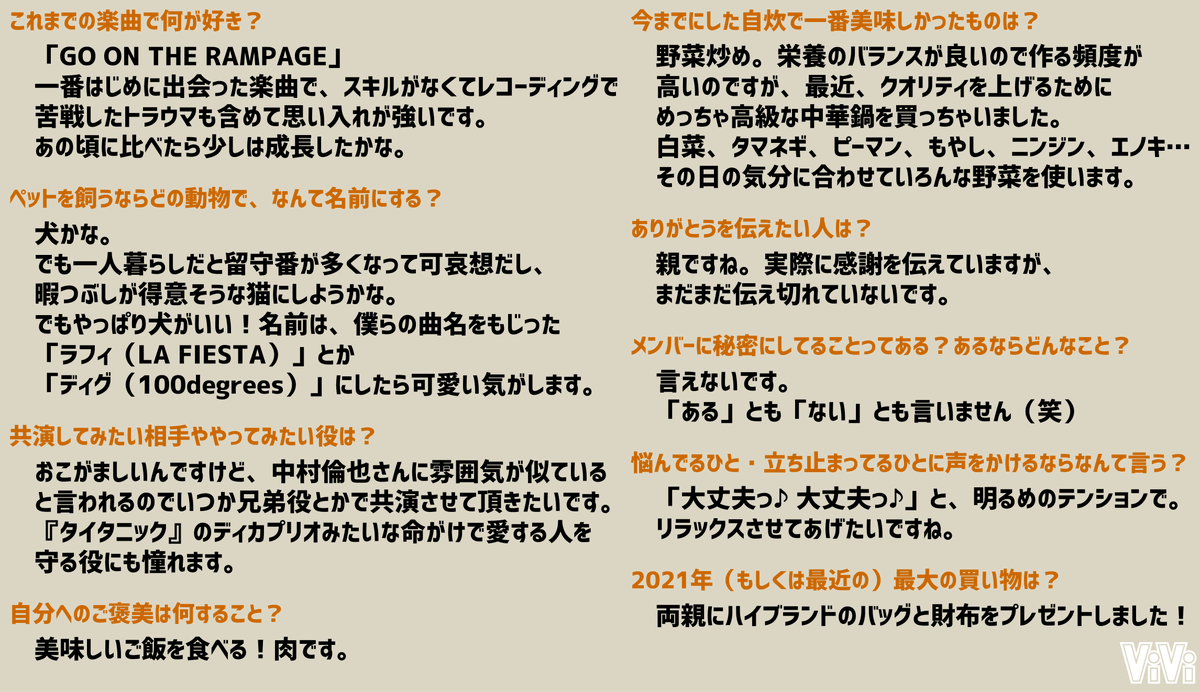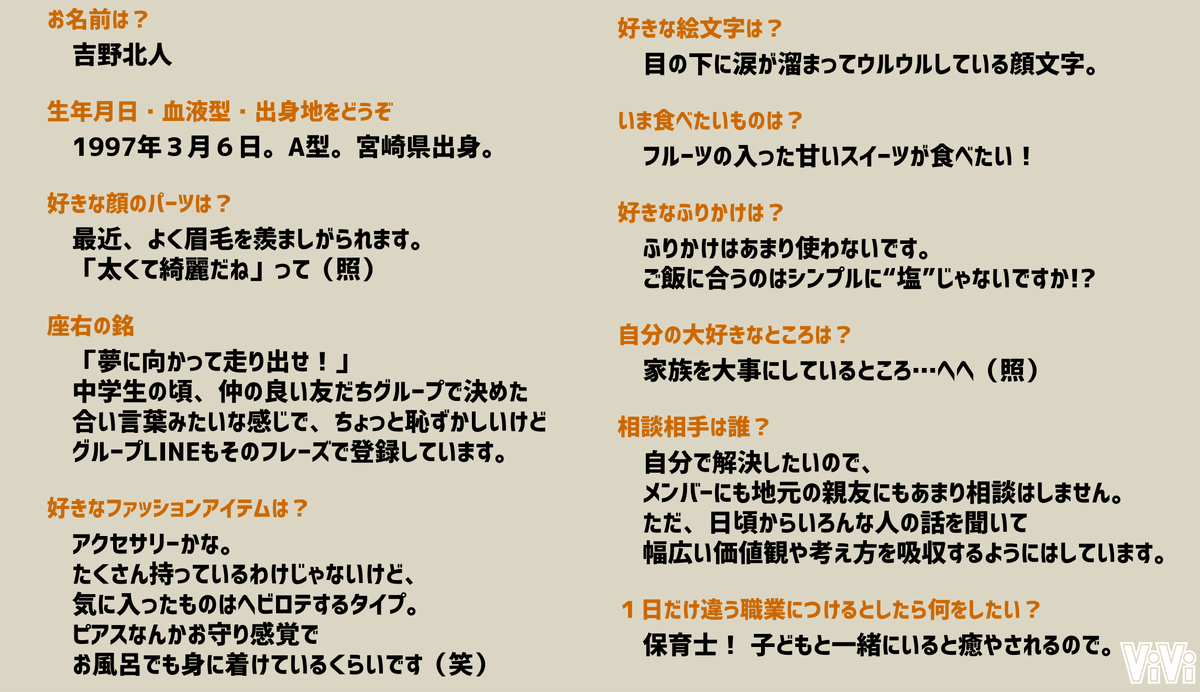 【THE RAMPAGE・吉野北人さん Q&A】ViVi12月号増刊版の表紙を務めてくれたかずほく♡今回は吉野北人さんに、仕事についてや趣味、私生活についてなど大量の質問に答えてもらいました!!