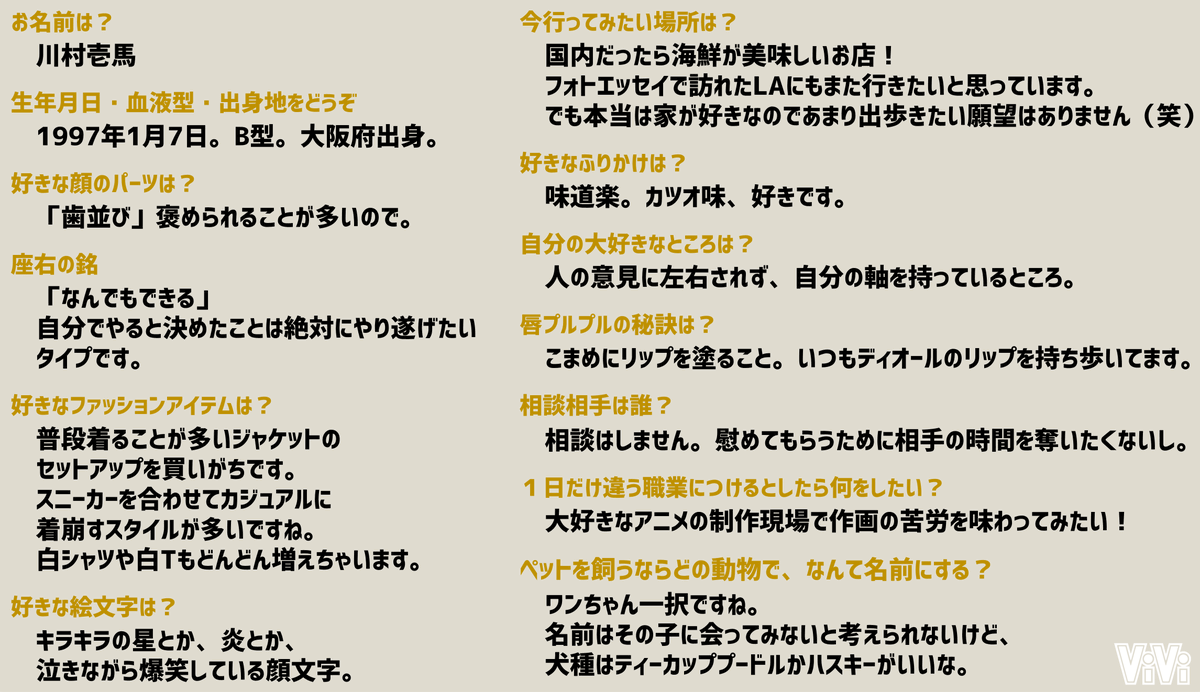【THE RAMPAGE・川村壱馬さん Q&A】ViVi12月号増刊版の表紙を務めてくれたかずほく♡今回は川村壱馬さんの内面に迫る質問を根掘り葉掘り聞いてきちゃいました!!