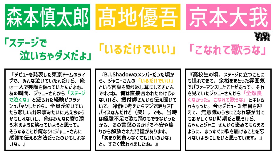 【SixTONES】メンバー6人がジャニーさんから言われた忘れられない名言リストがこちらです!!!めちゃめちゃ貴重なエピソードと一緒におしえてくれました…ジャニーさんの言葉で自信を持つことができたメンバーも…