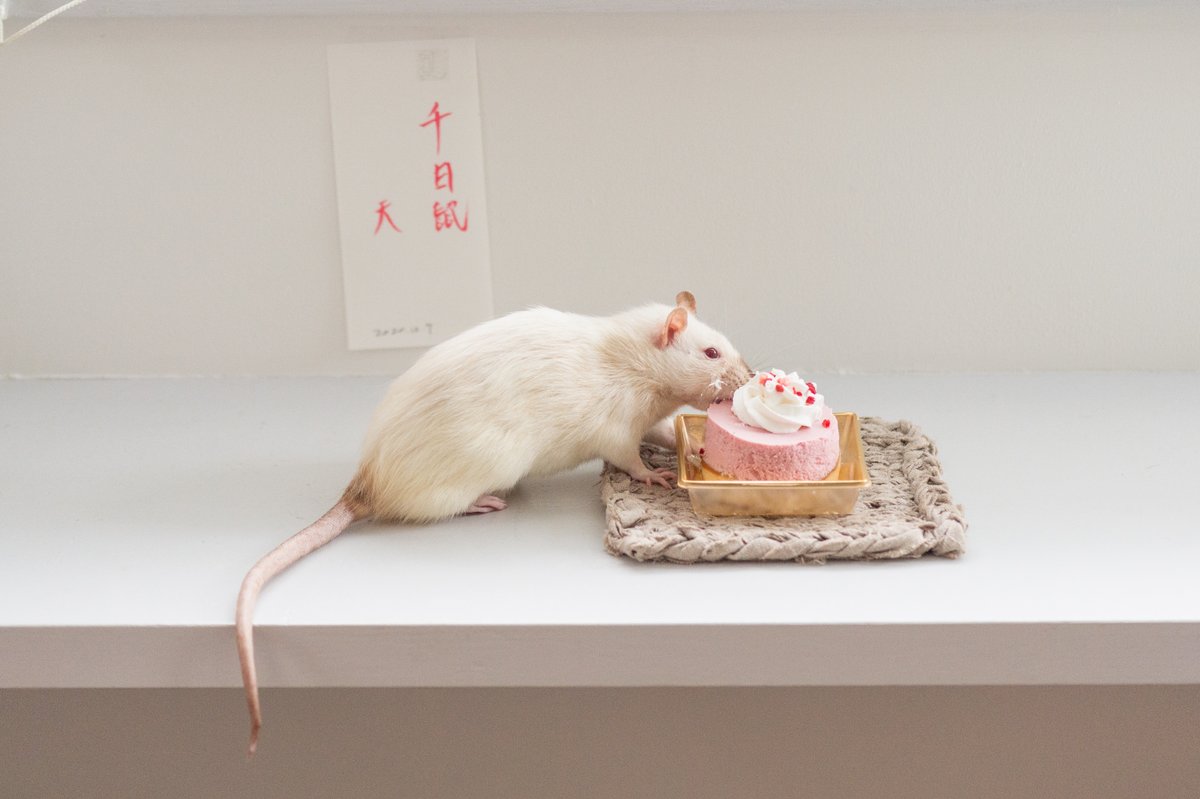 ネズミの剥製で優しい世界を作っています。